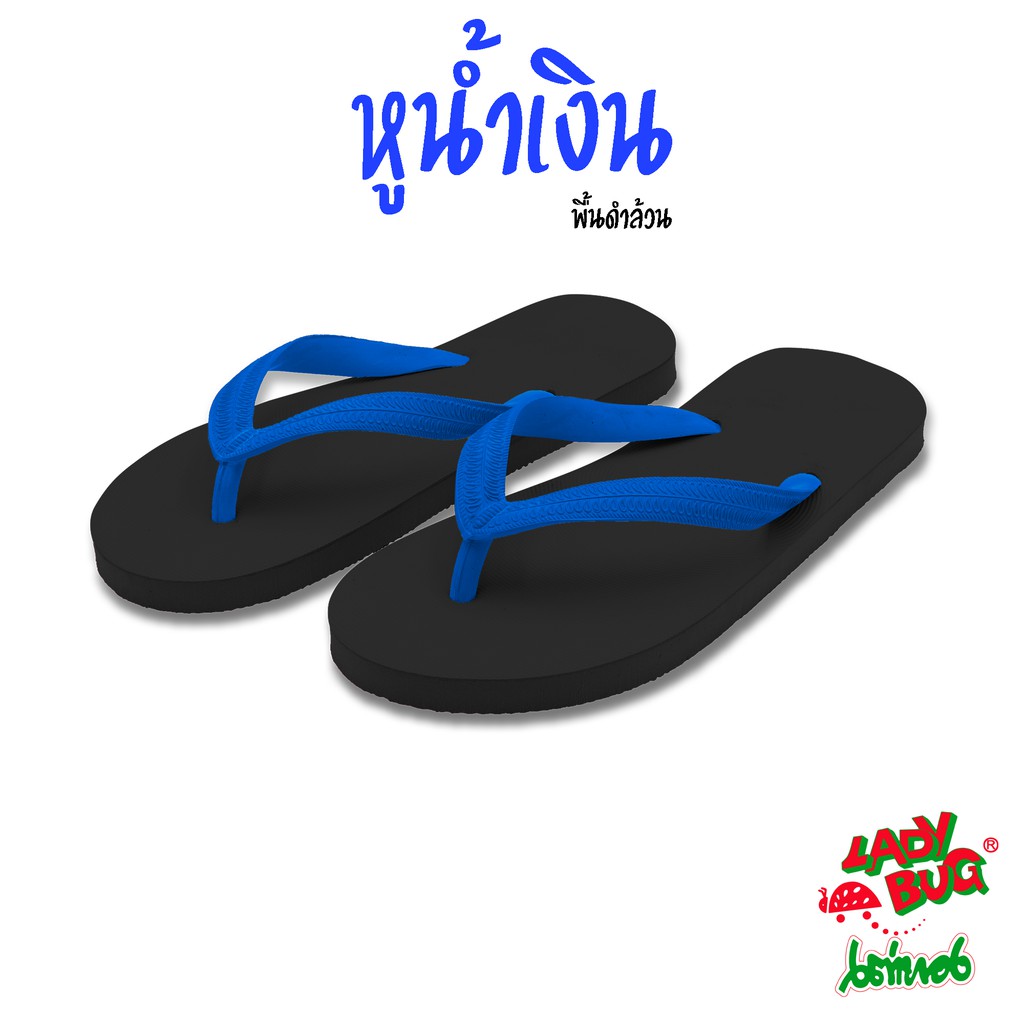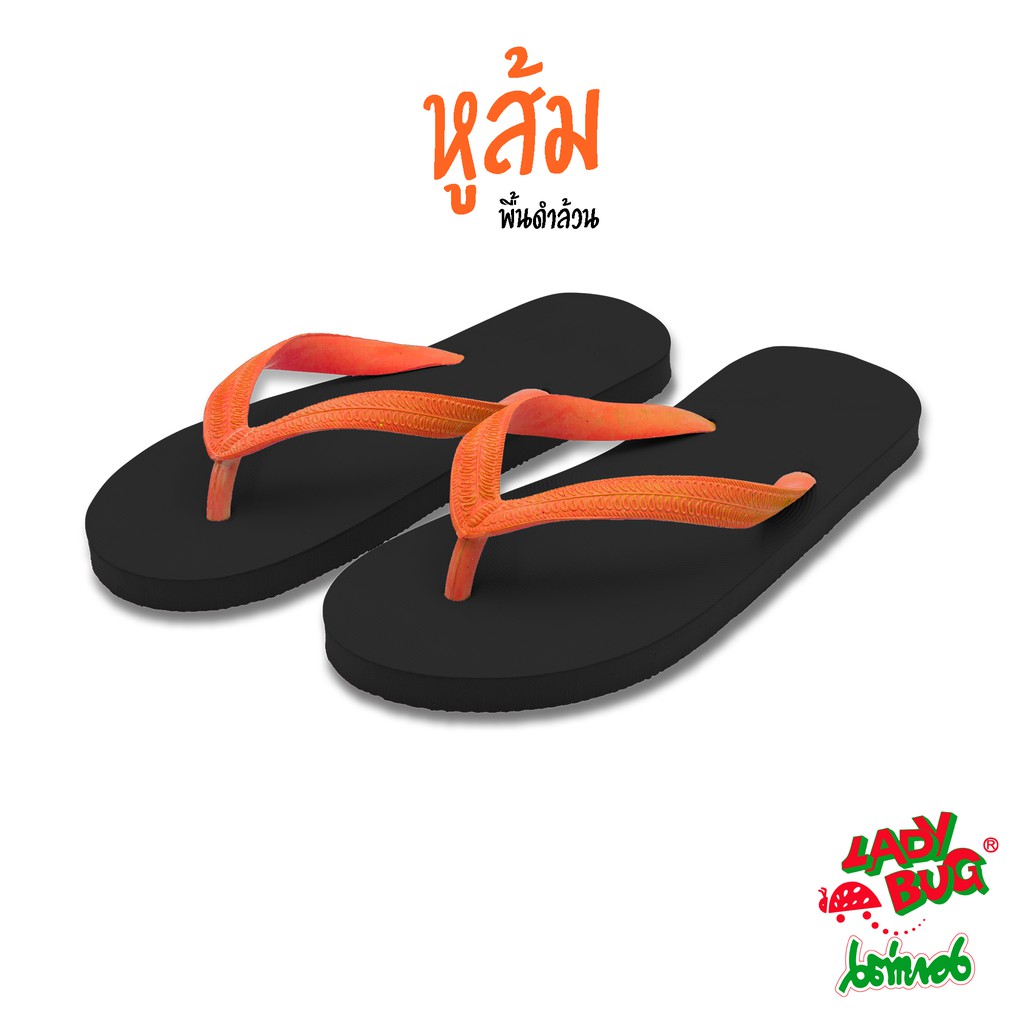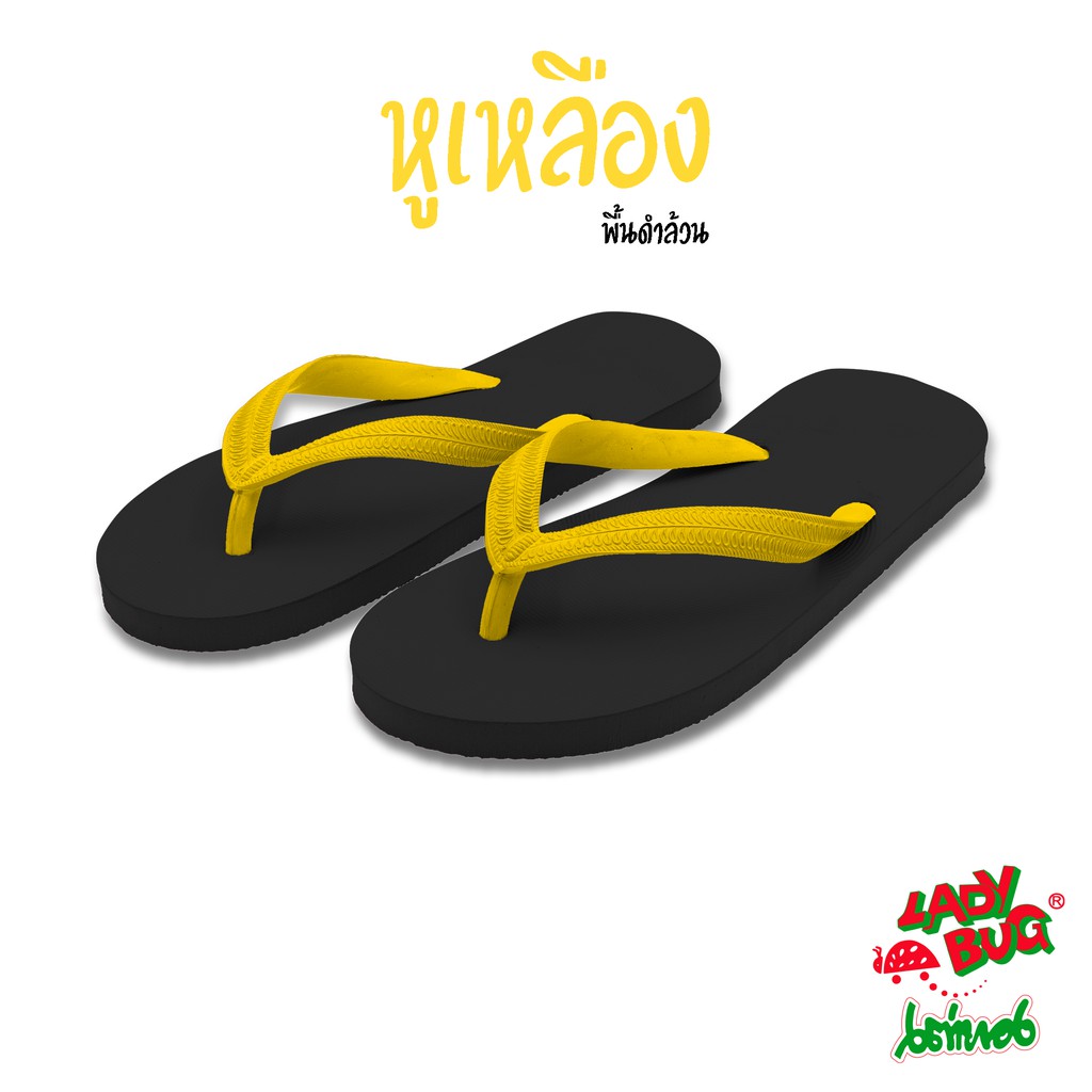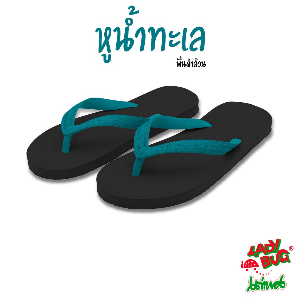 [59 บาท 12-14 พ.ย. + COONNOV79 +] LadyBug *** สินค้าขายดี *** รองเท้าแตะหูคีบ ตราเต่าทอง !!! พื้นดำล้วน หูหลากสี !!!