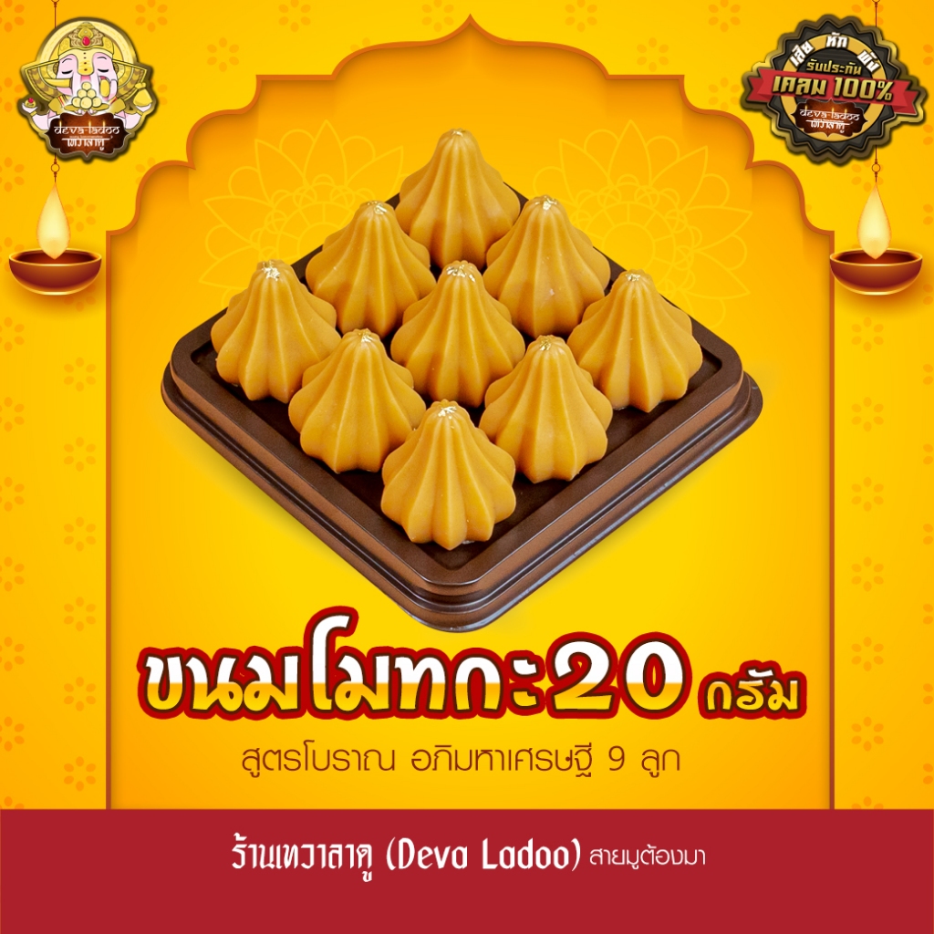 ขนมลาดู-โมทกะสูตรโบราณ อภิมหาเศรษฐี ขนาด 20 กรัม 3, 6, 9, 18 ลูก
