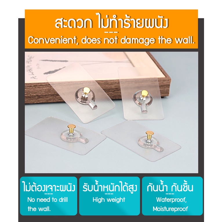 Zigma home - ตะขอ ตะขอแขวน ตะขอติดผนัง ตะปูติดผนัง (หัวตะปู) สำหรับแขวนกรอบรูป นาฬิกาแบบสติ๊กเกอร์ติดผนัง กาวนาโนค่ะ