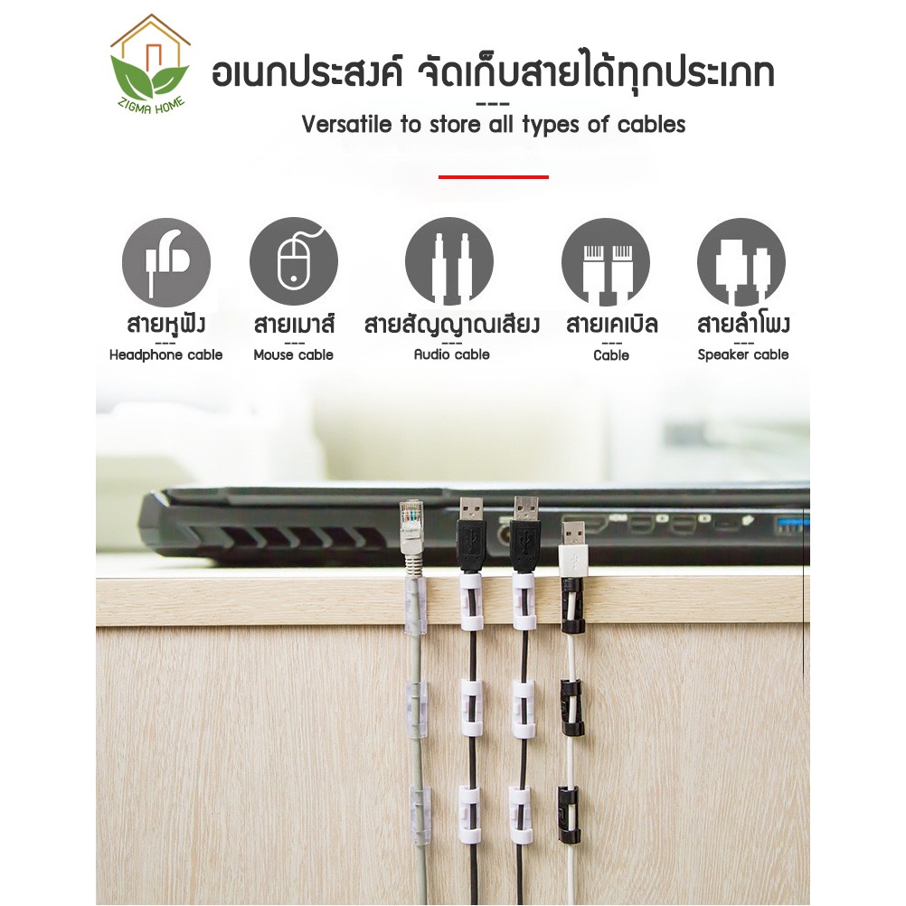 Zigma home - ที่เก็บสายไฟ ตัวล็อคสายไฟ ช่วยยึด ช่วยหนีบ ช่วยเก็บ จัดระเบียบ เพิ่มความเป็นระเบียบค่ะ