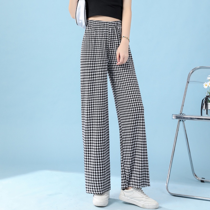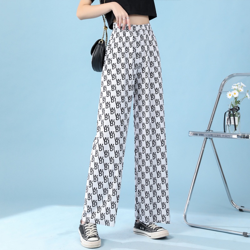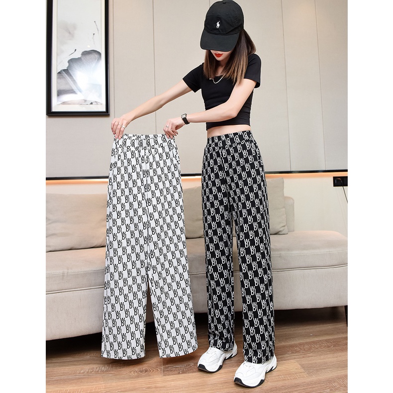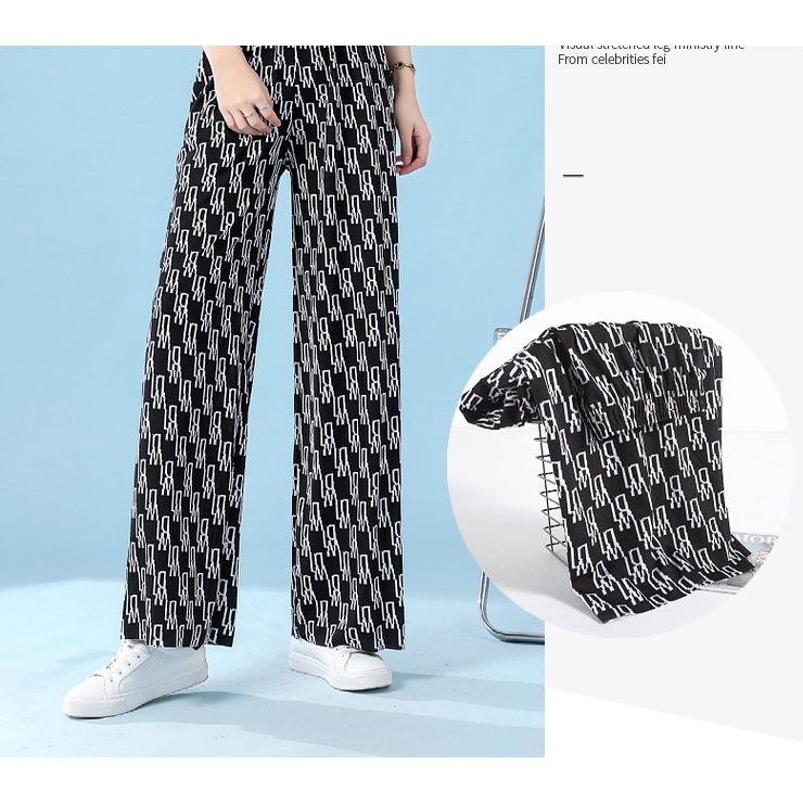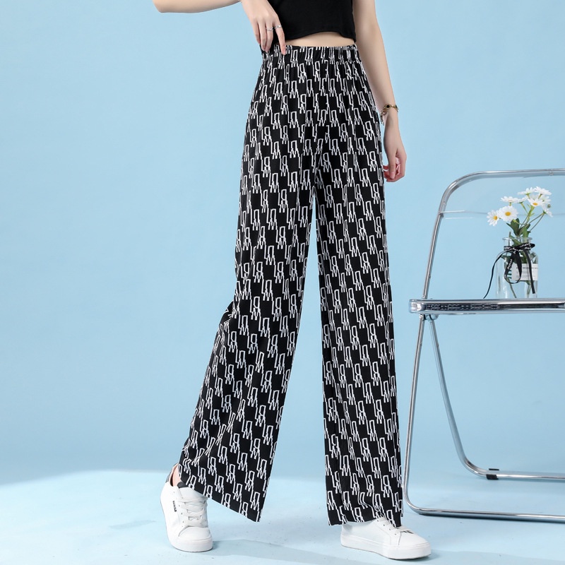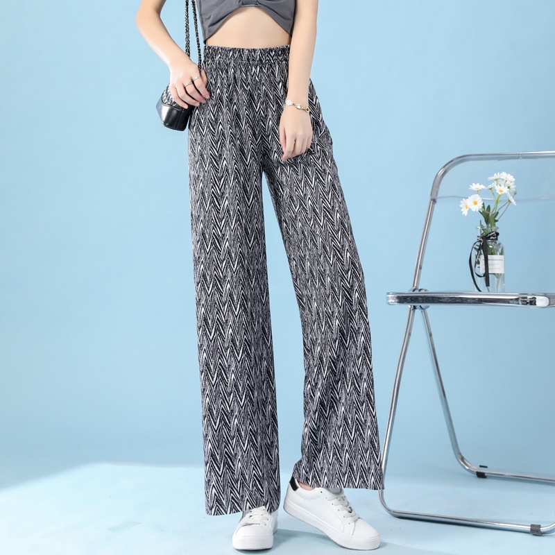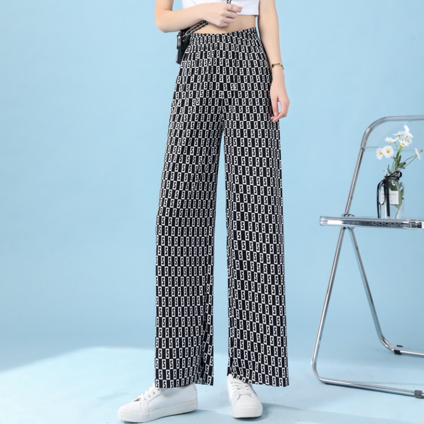 กางเกงขายาวผู้หญิงแฟชั่น กางเกงพิมพ์ลายทรงหลวม เนื้อผ้า โพลีเอสเตอร์ สวมใส่สบาย เอวสูงยางยืด มี 5 ลาย
