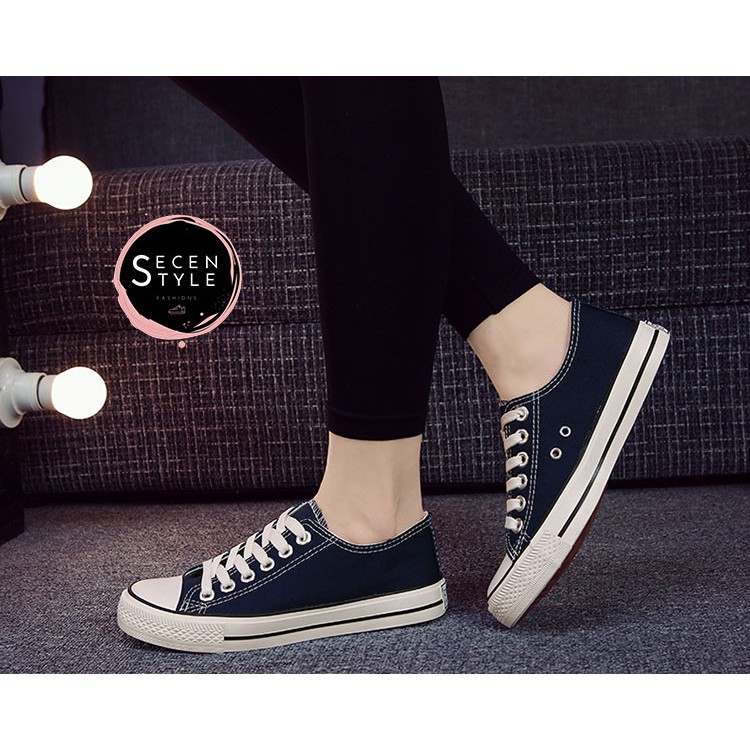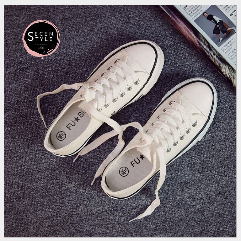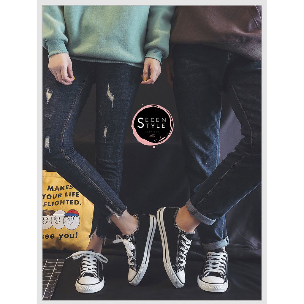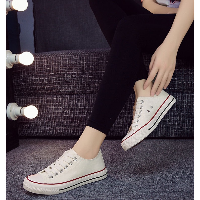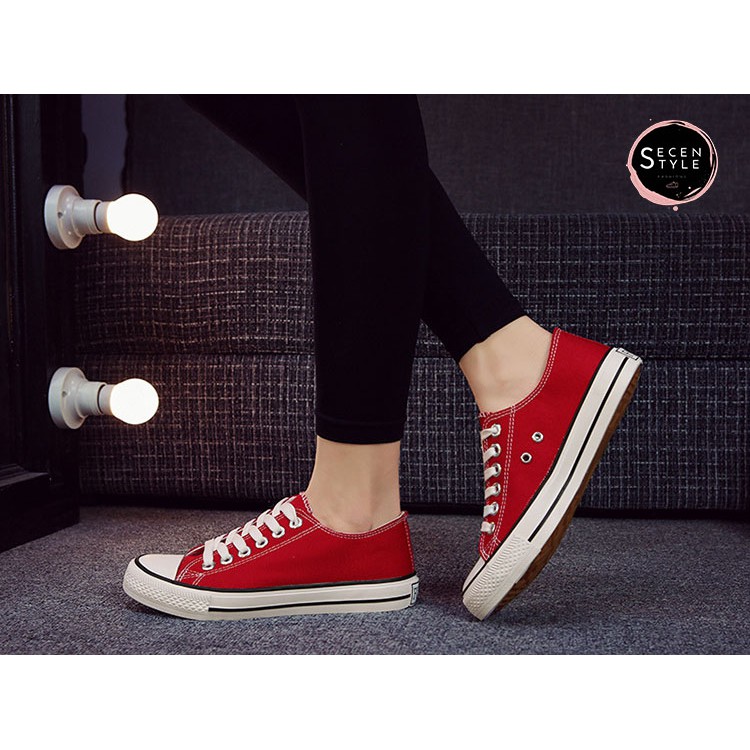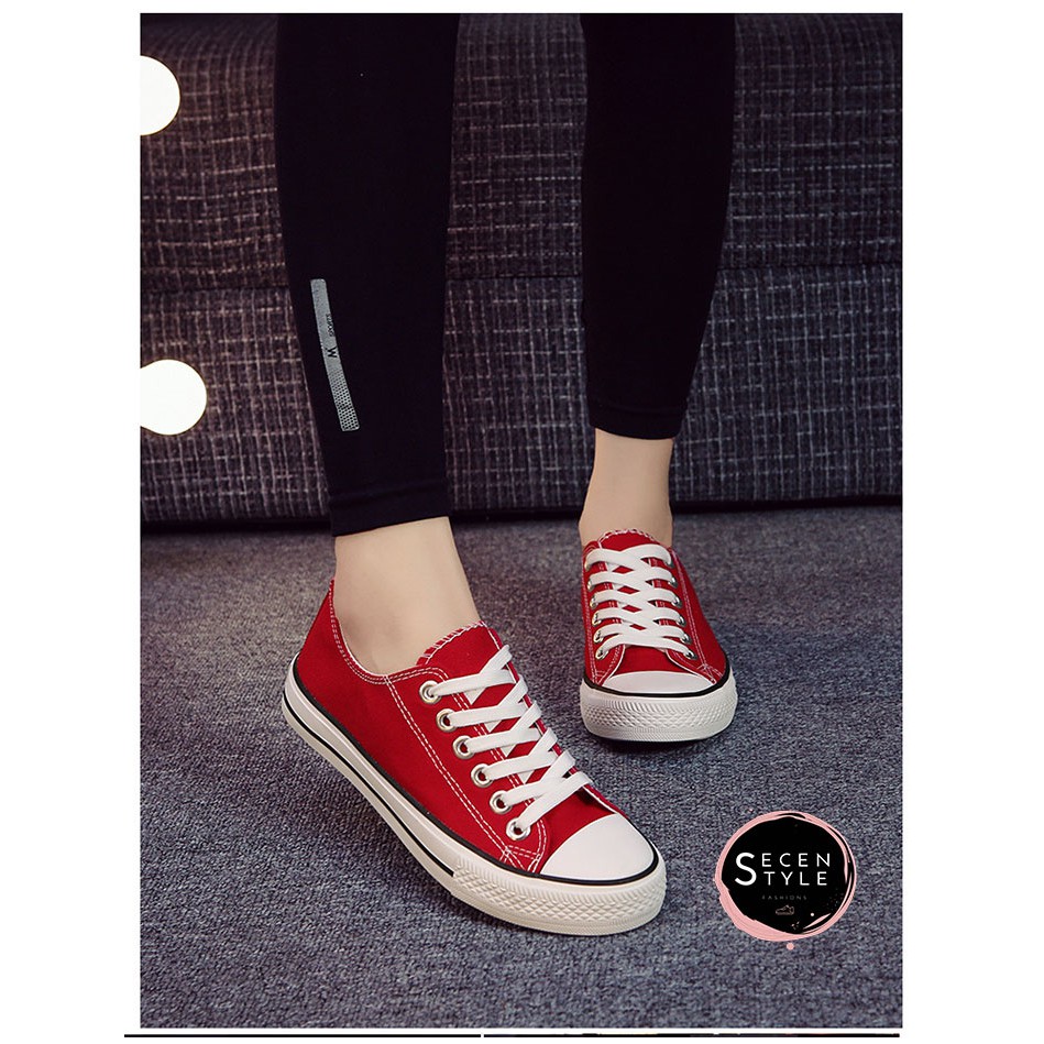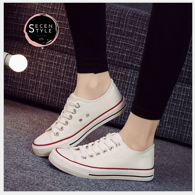 SECEN รองเท้าผ้าใบหญิง-ชาย รองเท้าคู่ ผ้าใบสีขาวแถบแดง ** พร้อมส่ง**(รุ่น SS-157) มีเก็บเงินปลายทาง