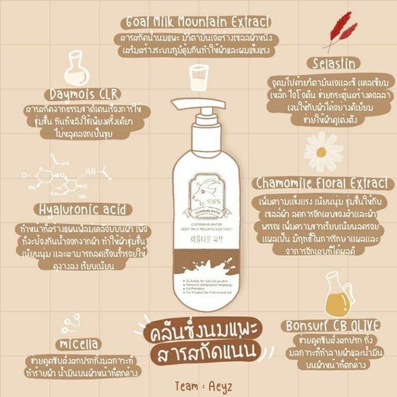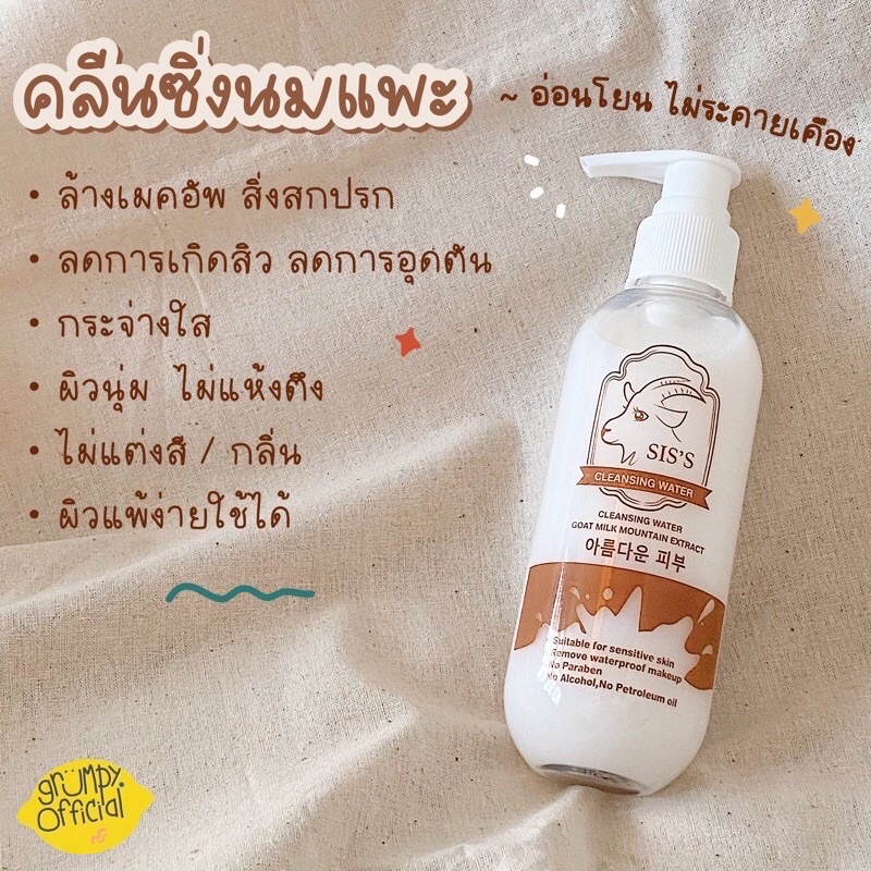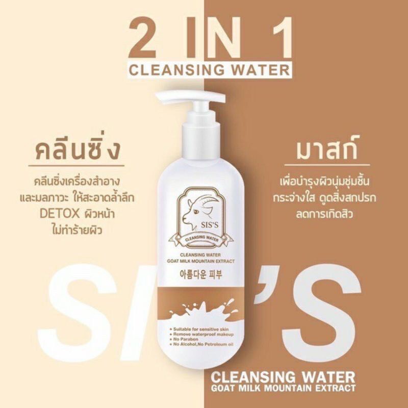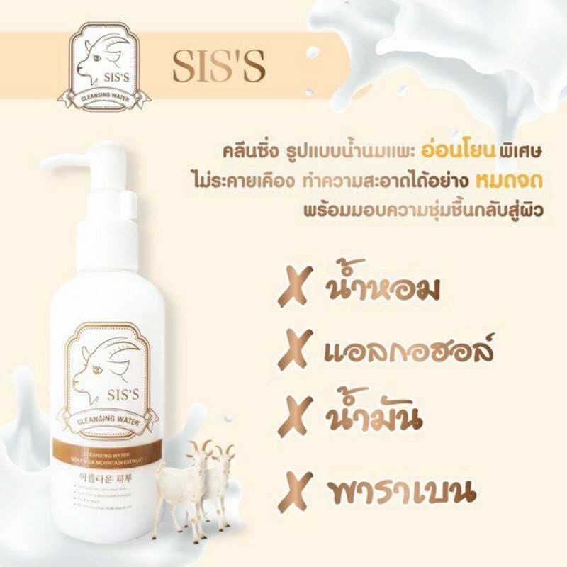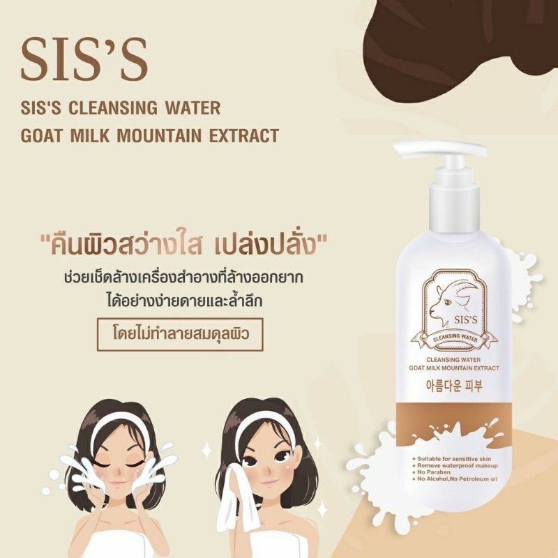 คลีนซิ่งนมแพะ SIS'S Cleansing Water Goat Milk ทำความสะอาดผิวหน้า ลดสิว หน้านุ่มเด้ง ผิวหน้าเรียบเนียน 200ml.