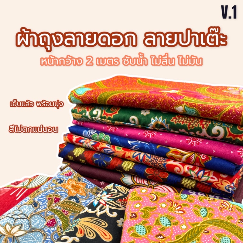 ผ้าถุง ปาเต๊ะ บาติก batik sarong กว้าง 2 ม. ยาว 1.15 ม. ซับน้ำดี สีไม่ตก ไม่ลื่น เย็บเรียบร้อย V.1 W01