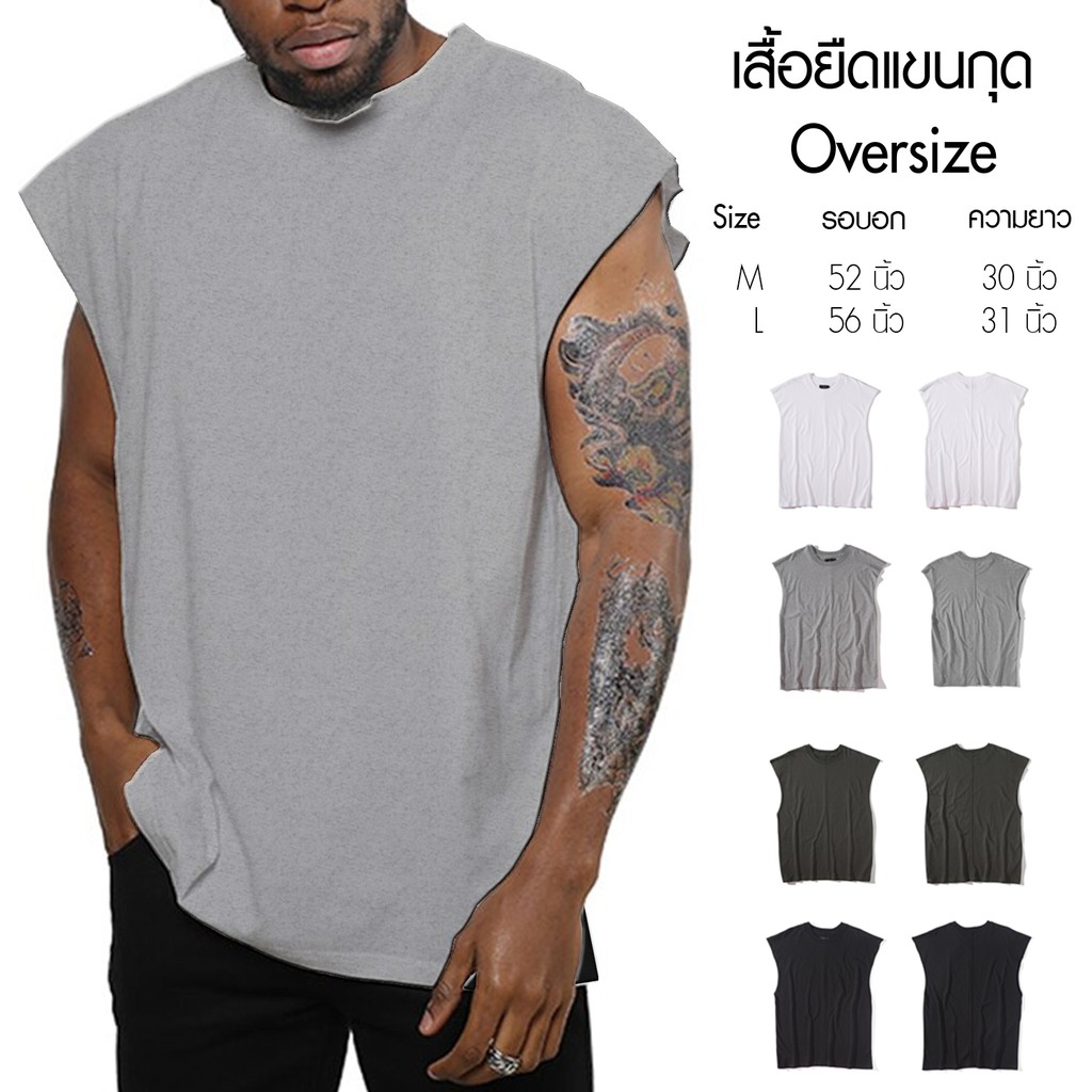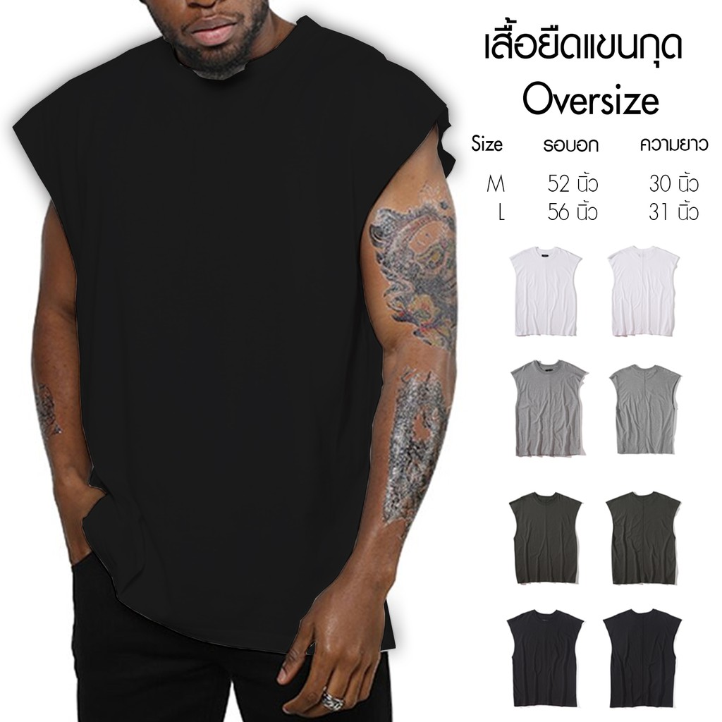 เสื้อยืดคอกลมแขนกุดOver size ตัวใหญ่มากใส่เย็นสบาย สไตล์สตรีท Summer Street Sleeveless Oversized cotton 100%