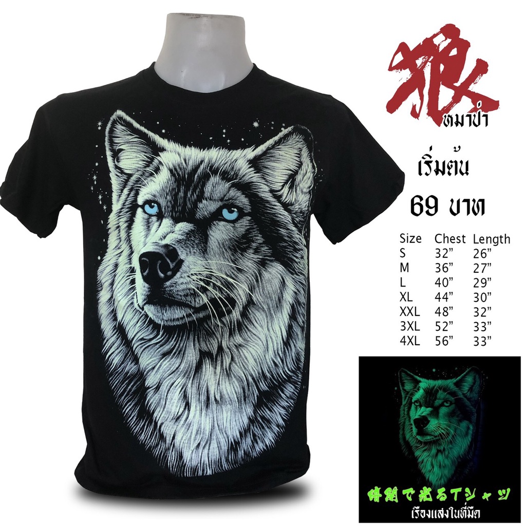 เสื้อยืดวินเทจ สรีนลายหมาป่าเรืองแสง cotton100%