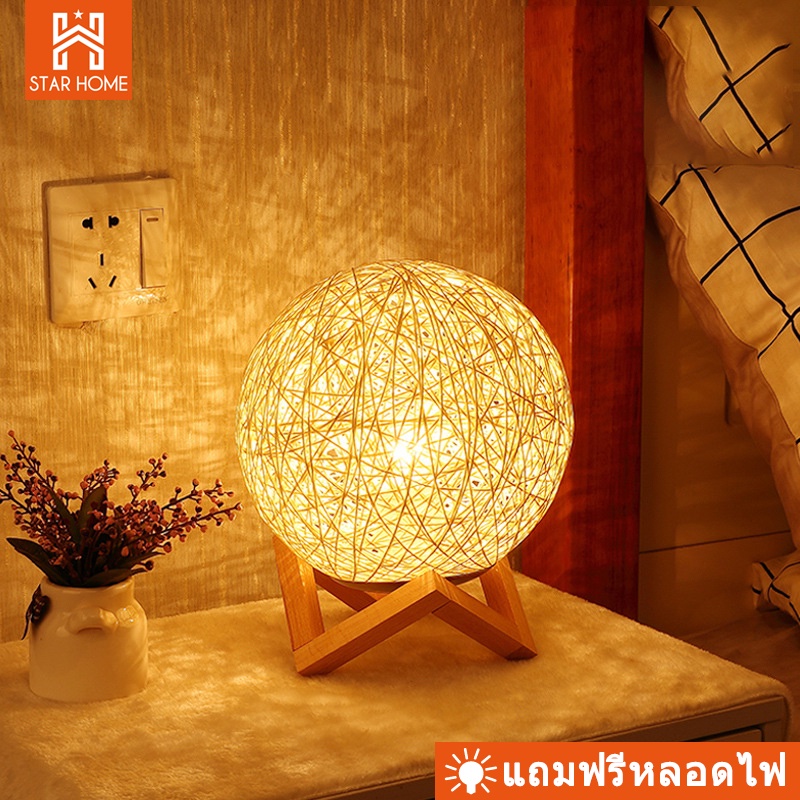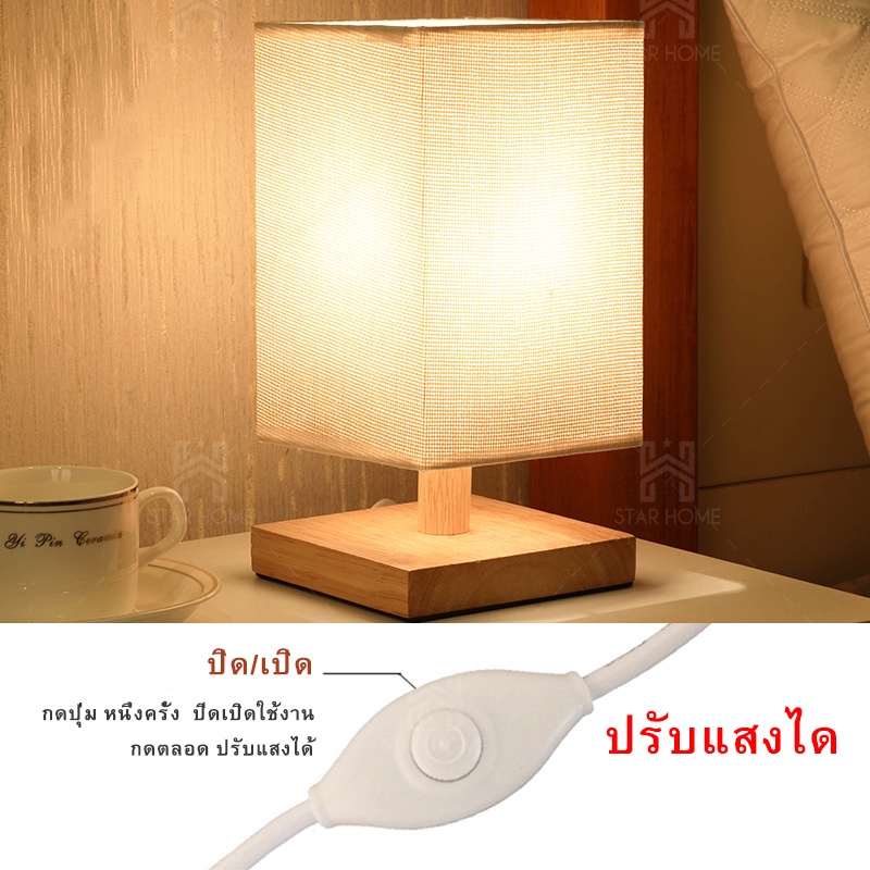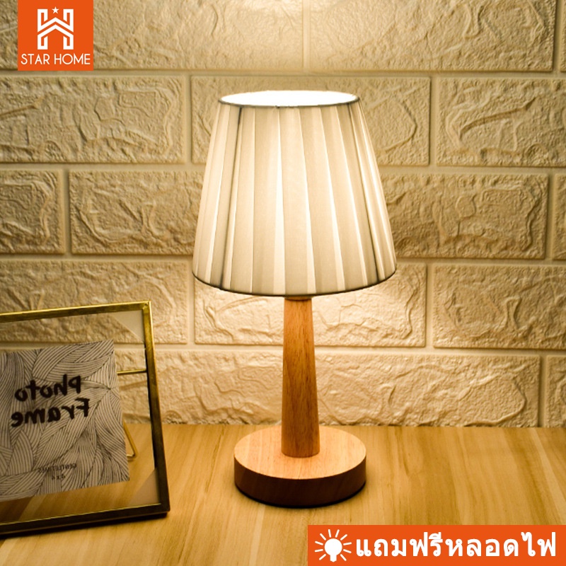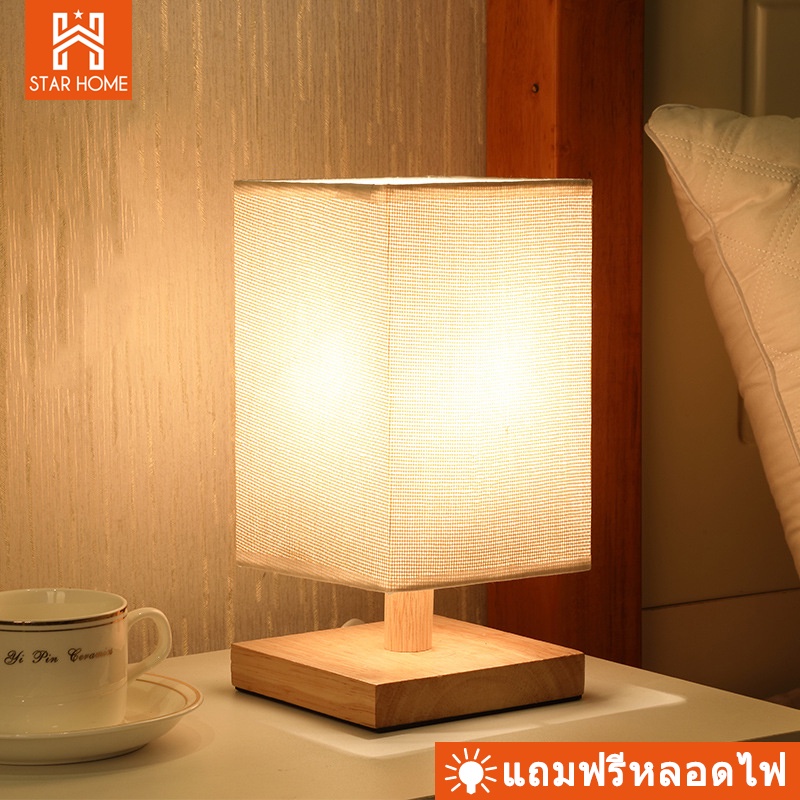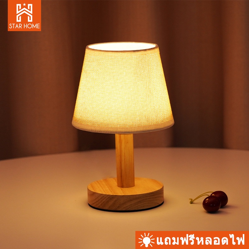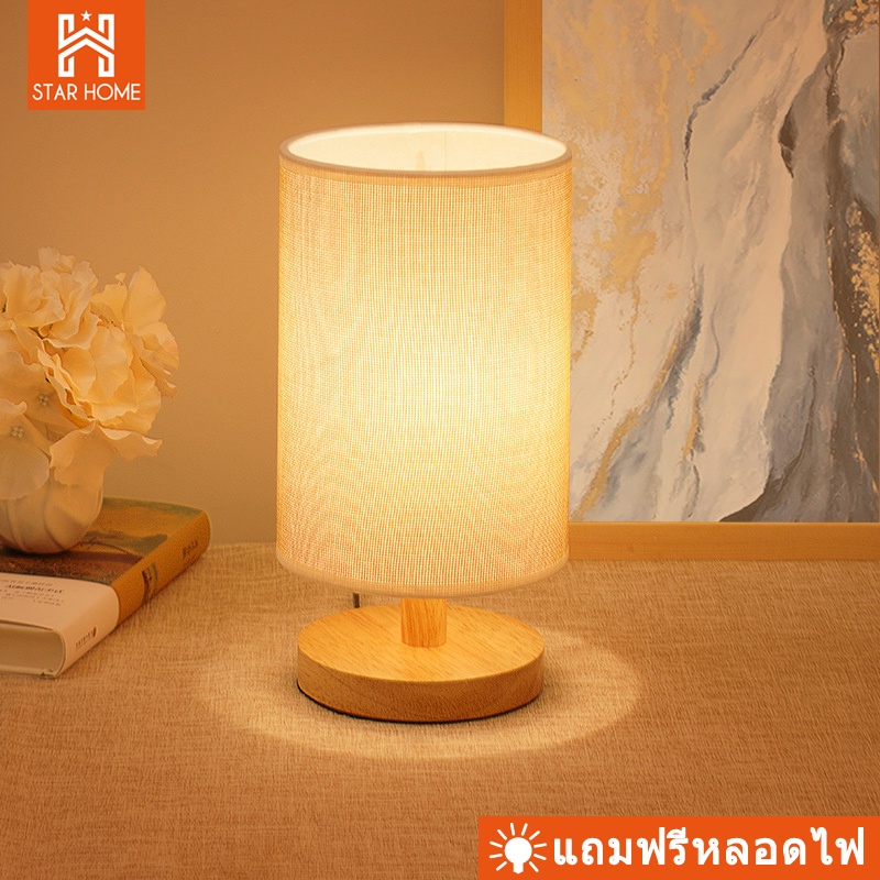 โคมไฟตั้งโต๊ะ โคมไฟข้างเตียงที่เรียบง่ายทันสมัยนอร์ดิกห้องนอน ไม้เนื้อแข็ง แสงอบอุ่นLED