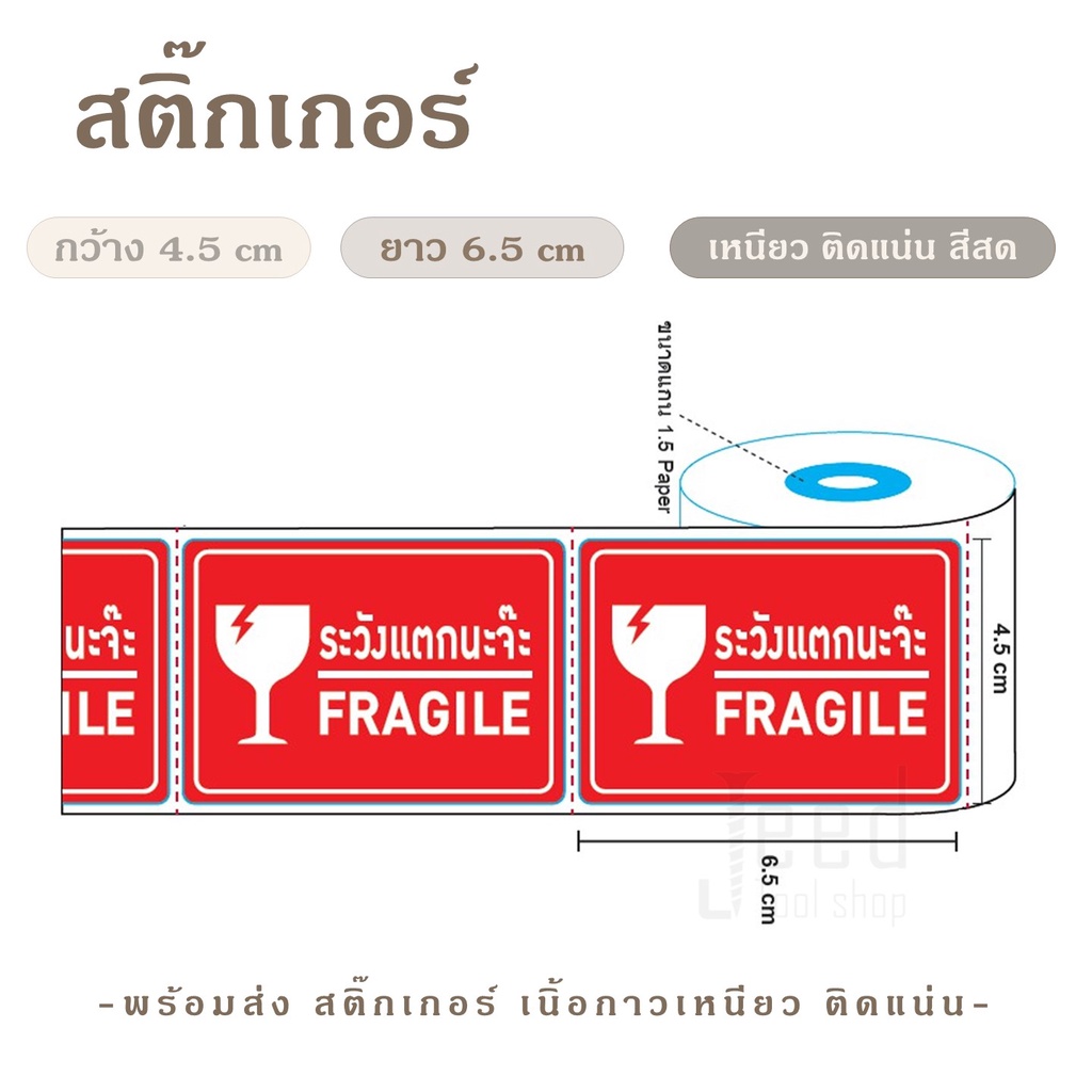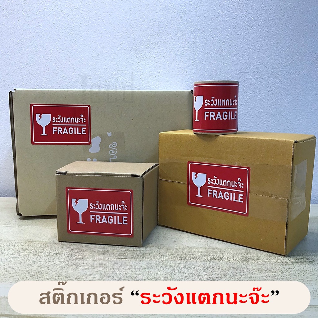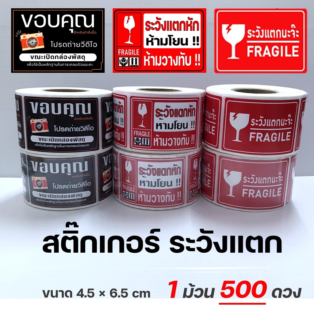 สติ๊กเกอร์ "ระวังแตกนะจ๊ะ" FRAGILE Sticker ม้วน 500 ดวง สติ๊กเกอร์ระวังแตก ห้ามทับ ห้ามโยน สติ๊กเกอร์โปรดถ่ายวีดีโอ VDO