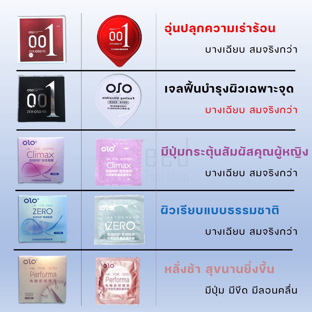 ถุงยางอนามัย ถุงยาง OlO โอโล (3ชิ้น/1กล่อง) แบบบาง ขนาด 0.01 มิล **ไม่ระบุชื่อสินค้าหน้ากล่อง