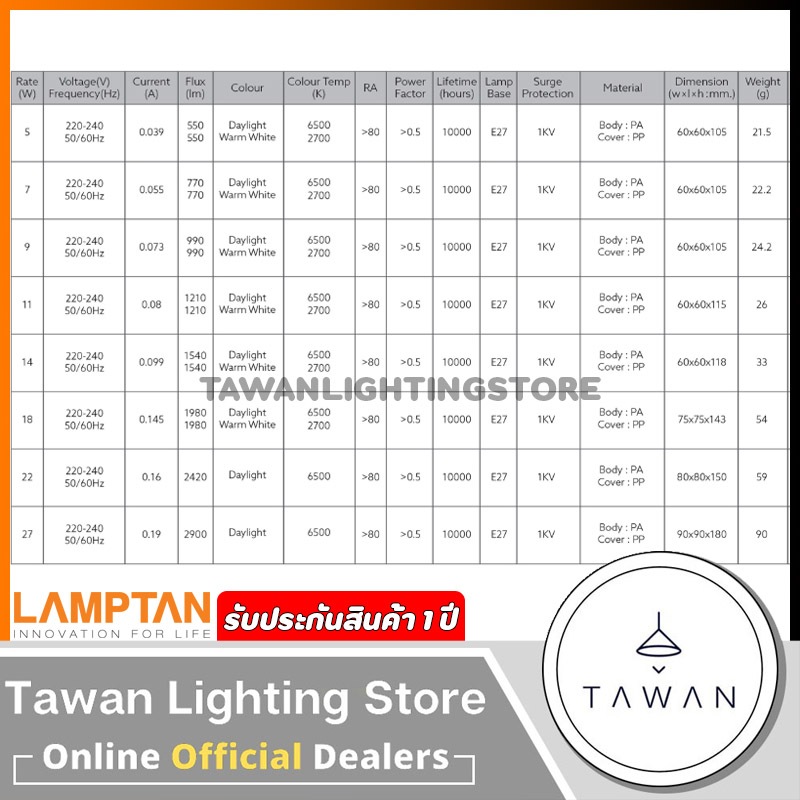 [1 หลอด] Lamptan หลอดไฟแอลอีดี 9วัตต์ A60 LED Bulb 9w ขั้วE27 รุ่น New Gloss Daylight แสงขาว Warmwhite แสงเหลือง