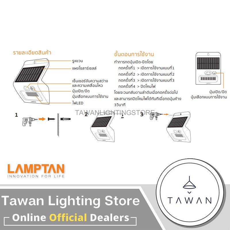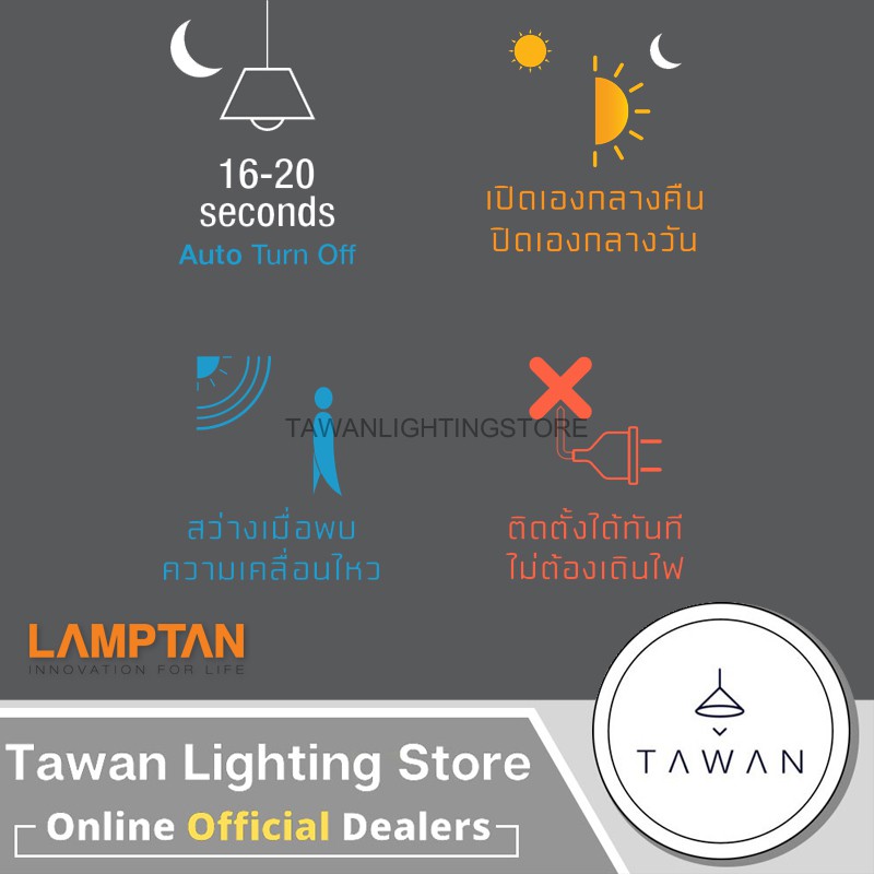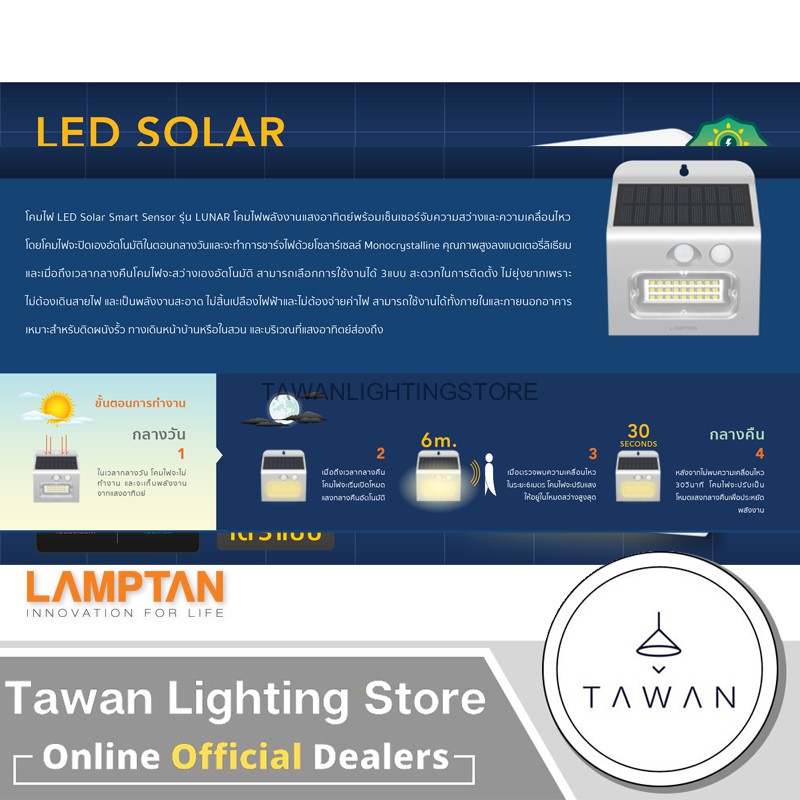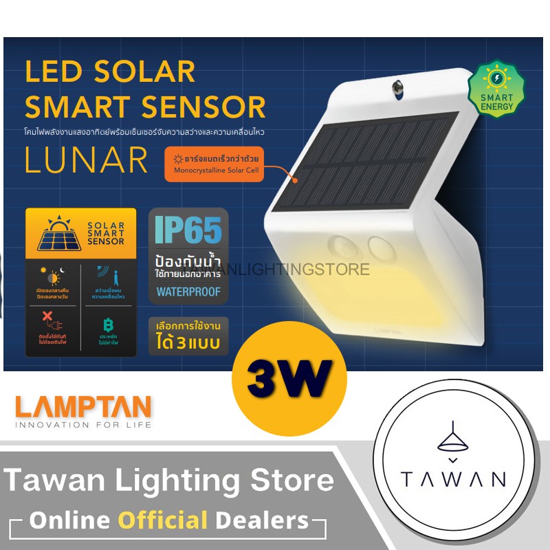 Lamptan โคมไฟติดผนัง โซล่าเซลล์ LED Solar Smart Sensor รุ่นLunar 3W แสงนวล ทำงานได้ 3 ระบบ