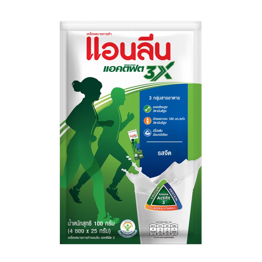Anlene Actifit 3 แอนลีน แอคติฟิต 3 นมผงพร่องมันเนย แบบชง ชนิดซอง รสจืด 4x25 กรัม (100 กรัม)