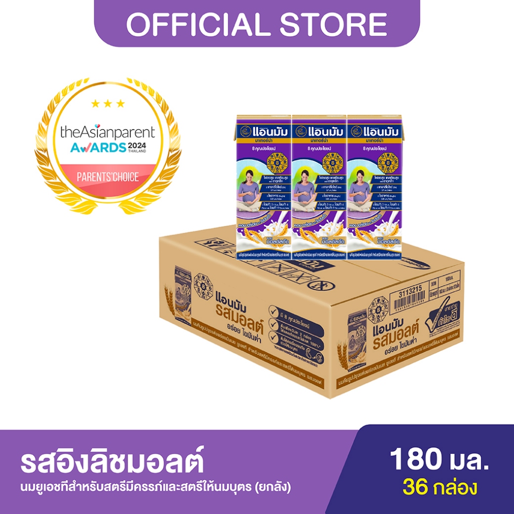 [ขายยกลัง] Anmum แอนมัม มาเทอร์น่า นมกล่องยูเอชทีสำหรับคนท้อง คุณแม่ตั้งครรภ์ รสอิงลิชมอลต์ ยกลัง 3x180 มล. (36 กล่อง)