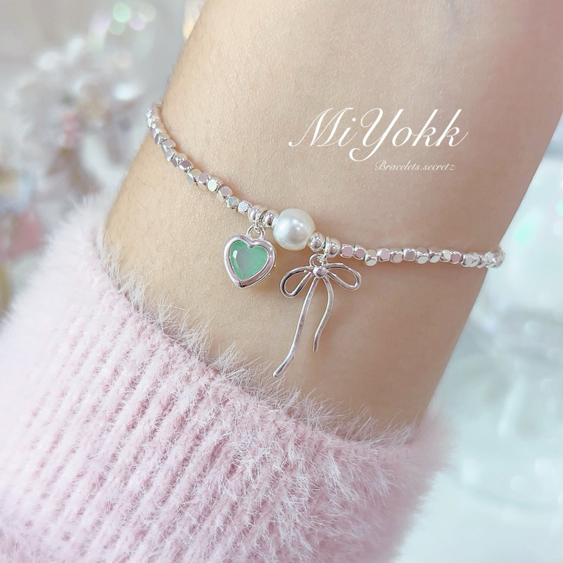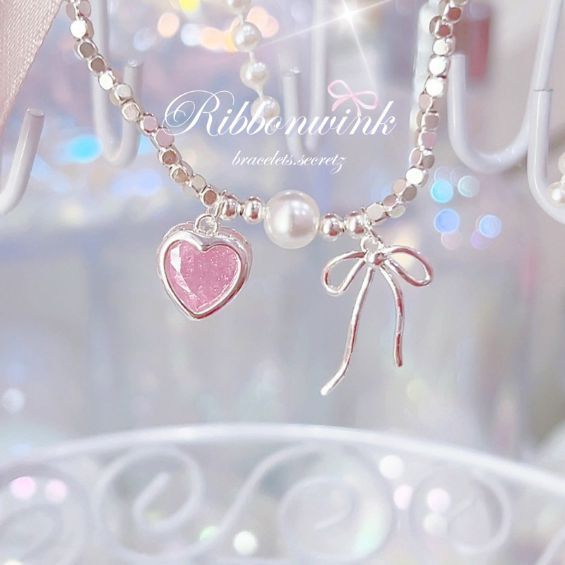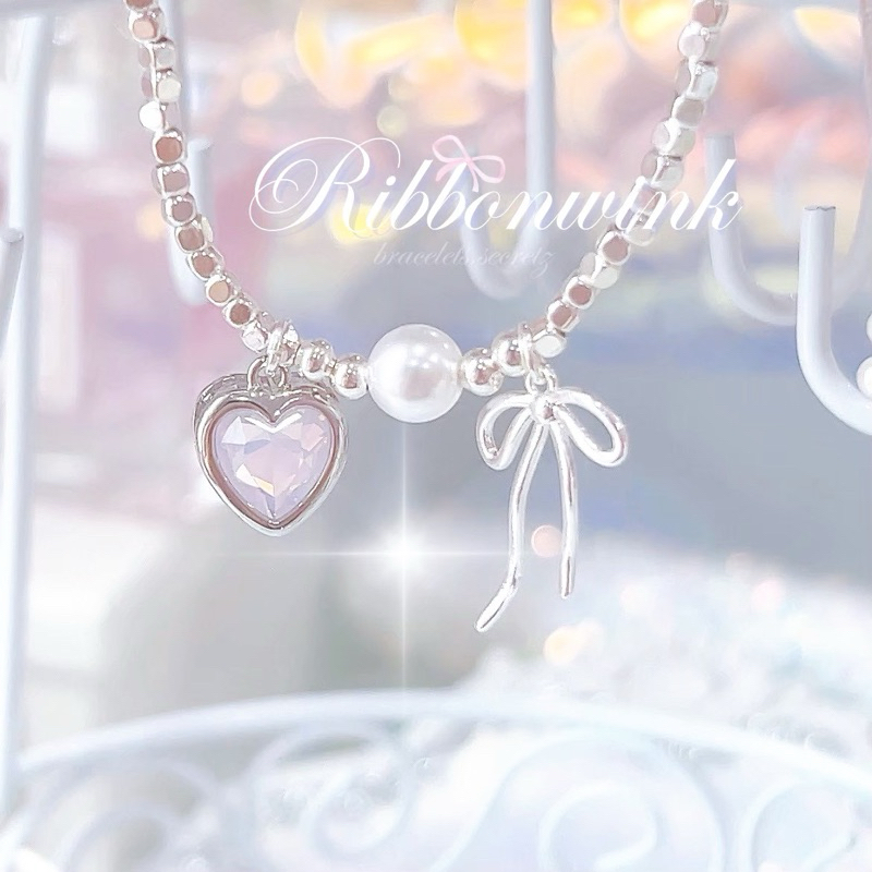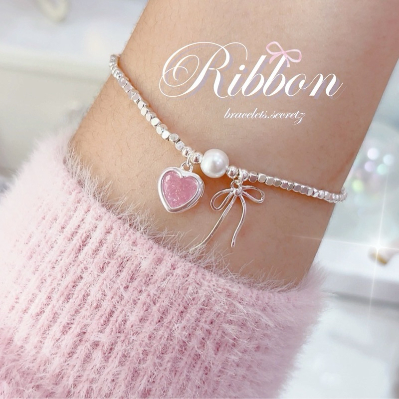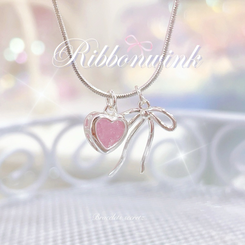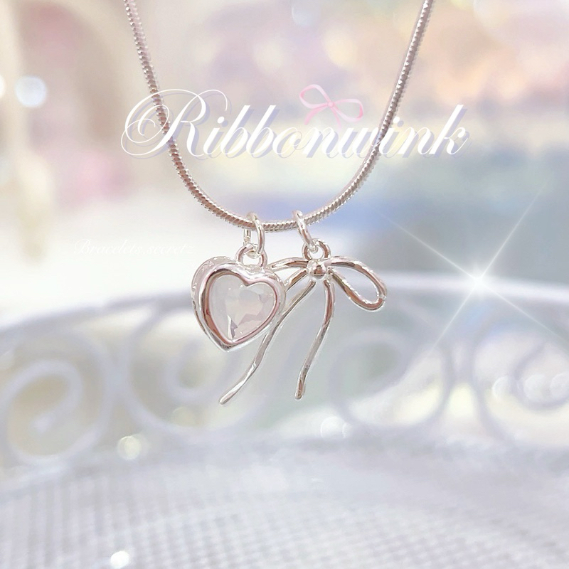 🎀 ลด80฿ 🪞🩷 โค้ดหน้าร้าน 🎀🩷 New~ Valentine Ribbon 🎀 สร้อยคอชุบเงินแท้92.5% สร้อยข้อมือ กำไลหัวใจน่ารัก โบว์ 121 pandoraa