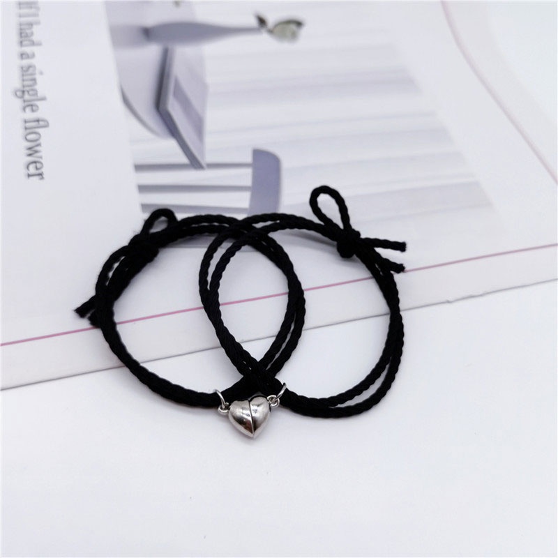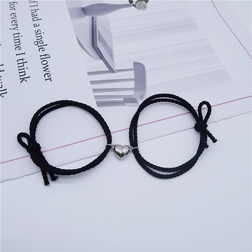 2 ชิ้นสร้อยข้อมือคู่จี้แม่เหล็ก เกาหลี คู่สร้างสรรค์เสน่ห์เครื่องประดับคนรักของขวัญ/คู่แม่เหล็กทอ 2024
