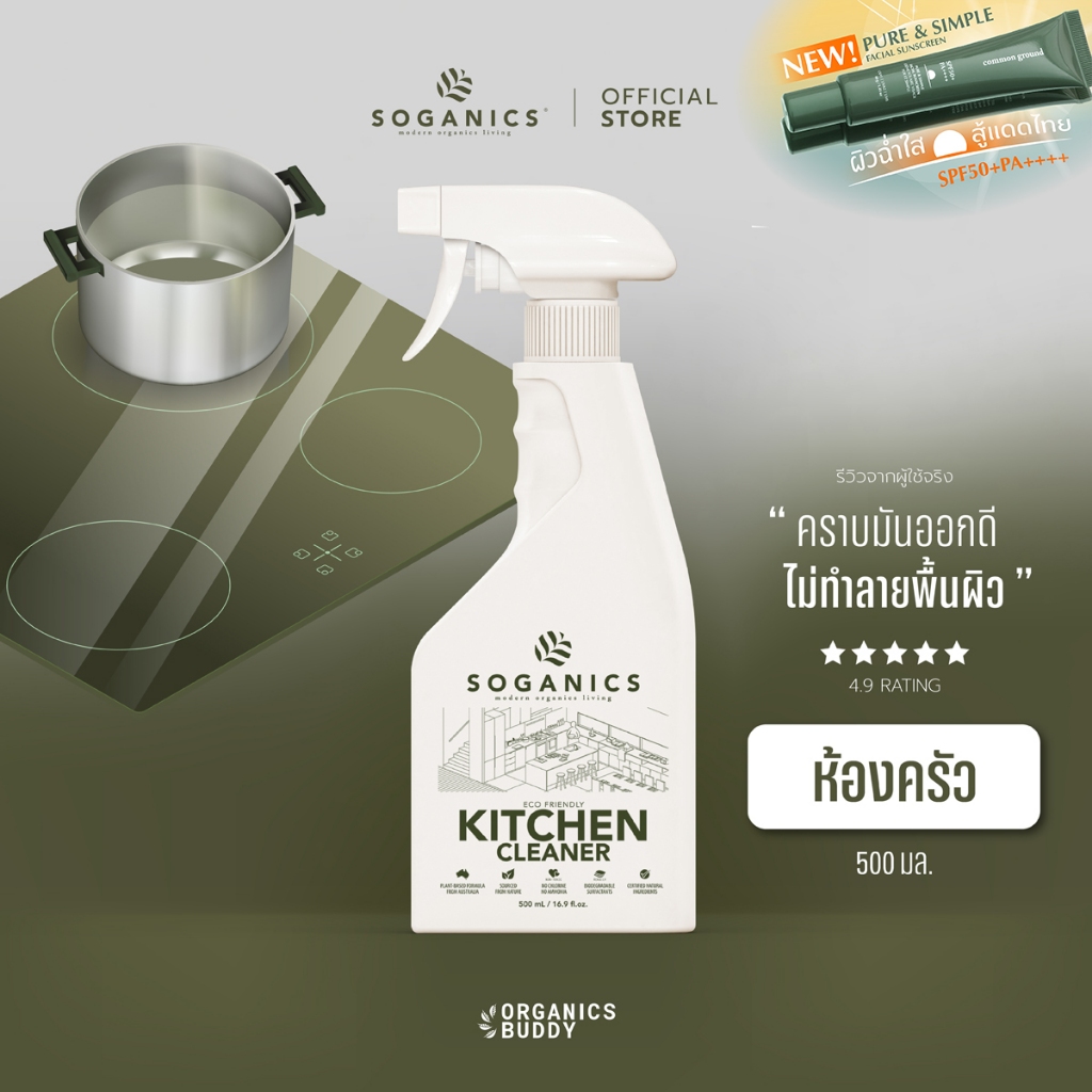 SOGANICS Kitchen Cleaner สเปย์ทำความสะอาดห้องครัว ขจัดคราบมัน เช็ดโต็ะอาหาร เตาไฟฟ้า ไมโครเวฟ 500ml