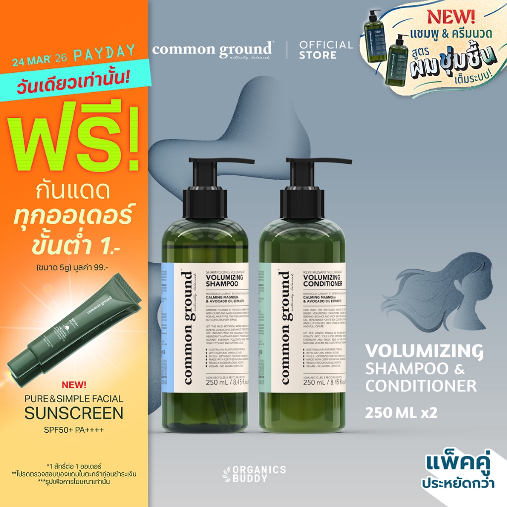 [แพคคู่] Common Ground Volumizing Shampoo & Conditioner แชมพู ครีมนวด Avocado Oil Extracts (250mlx2)