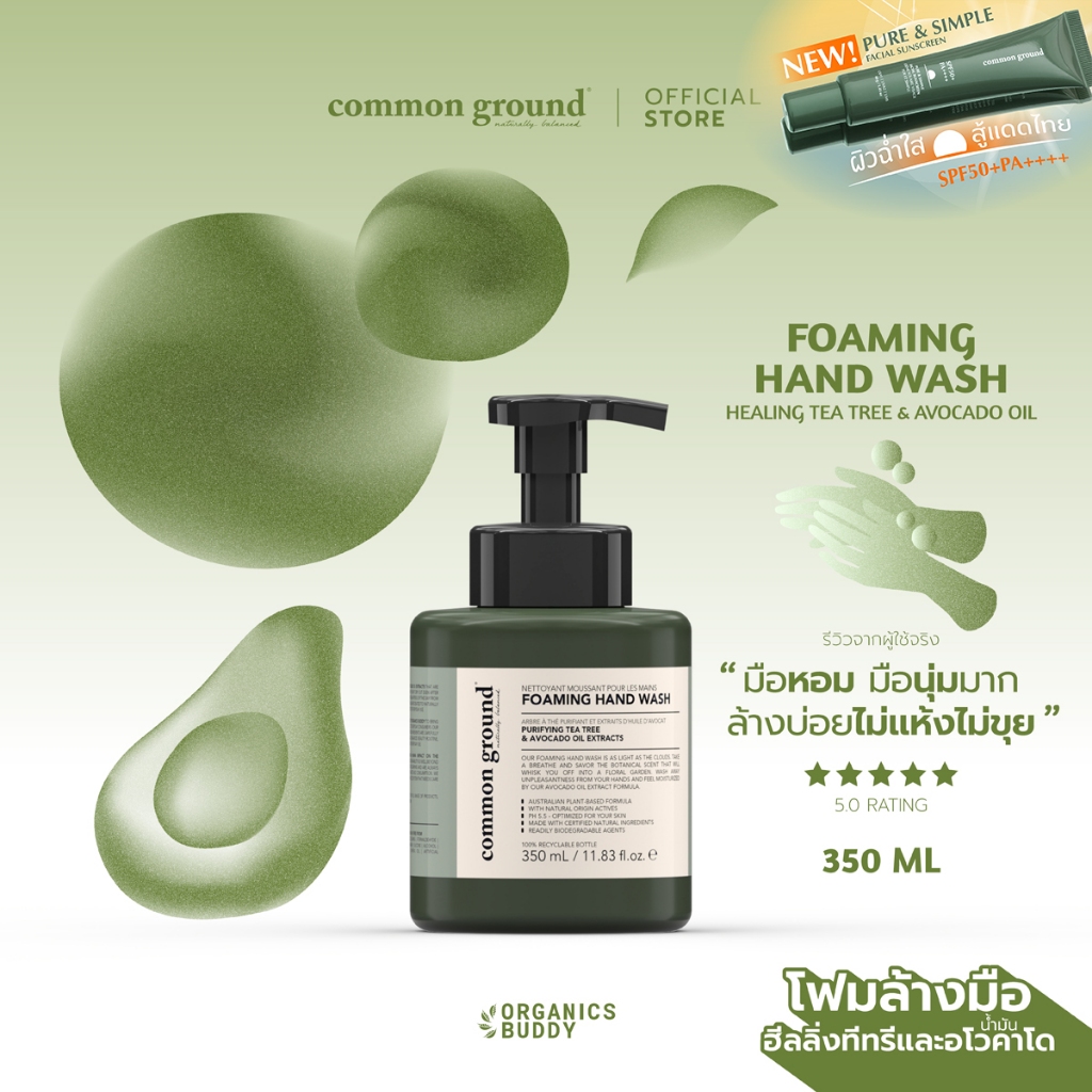 Common Ground Foaming Hand Wash โฟมล้างมือ Purifying Tea Tree & Avocado Oil Extracts 350ml
