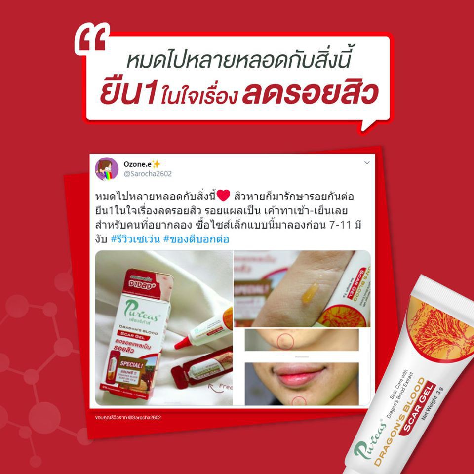 Puricas Dragon's Blood Scar gel เพียวริก้าส์ ลดรอยแผลเป็น รอยแดง รอยดำ รอยสิว