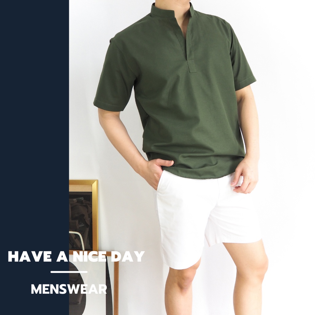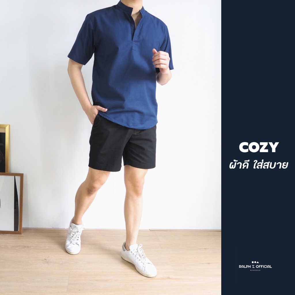 เสื้อเชิ้ตแขนสั้นผู้ชาย TOBY SHORT - RALPH T เสื้อเชิ้ตผู้ชาย คอจีน แขนสั้น โปโล ฮาวาย