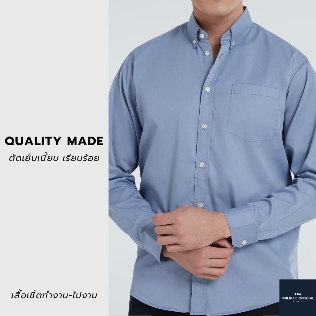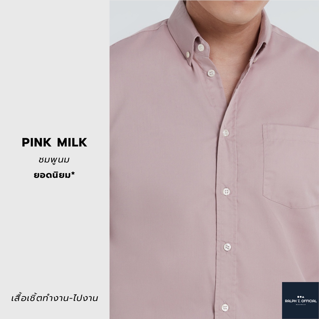 เสื้อเชิ้ตผู้ชาย แขนยาว ผ้า COTTON TWILL - RALPH T เสื้อเชิ้ตแขนยาว ทำงาน ผู้ชาย สีชมพู สีขาว