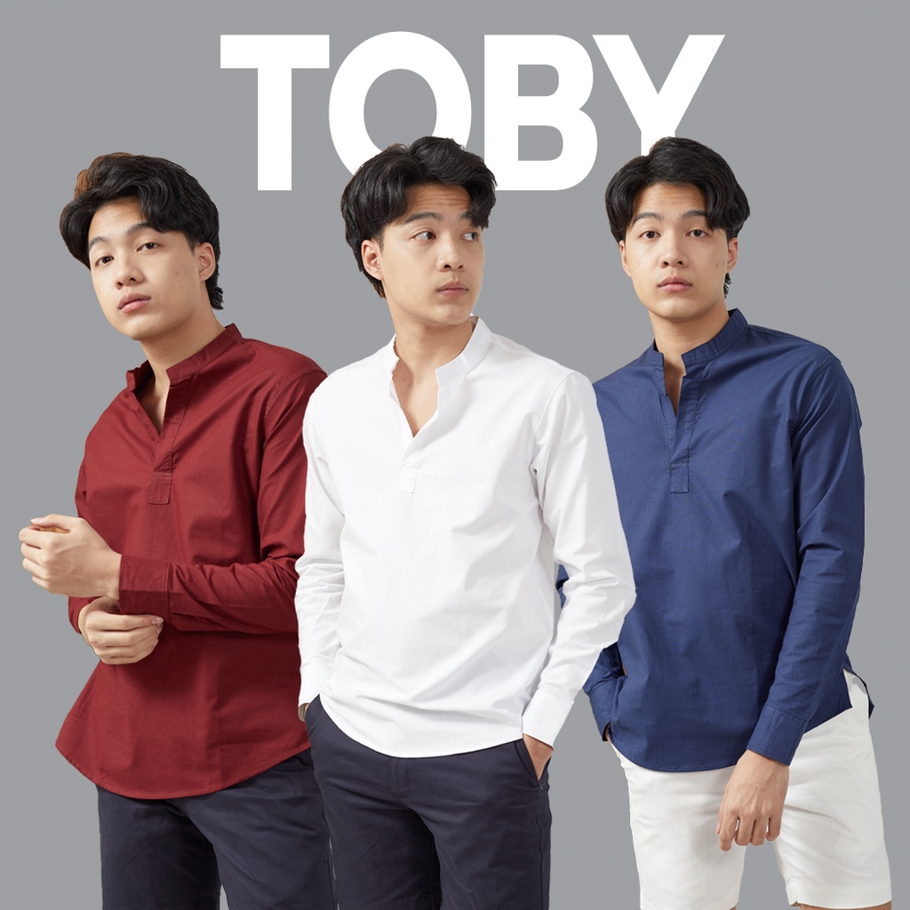 เสื้อคอจีน ผู้ชาย PULLOVER TOBY LONG สไตล์เกาหลี - RALPH T เสื้อเชิ้ต คอจีน แขนยาว ชาย