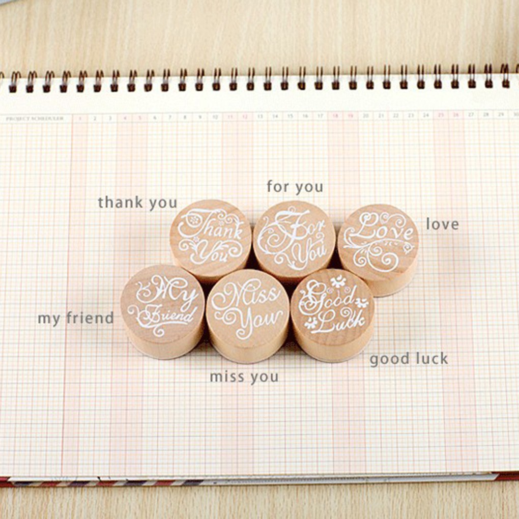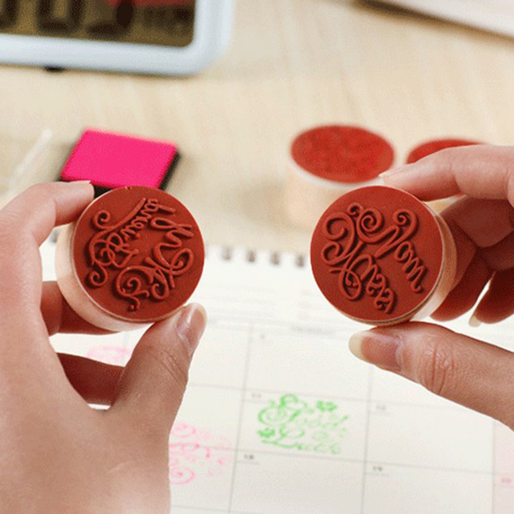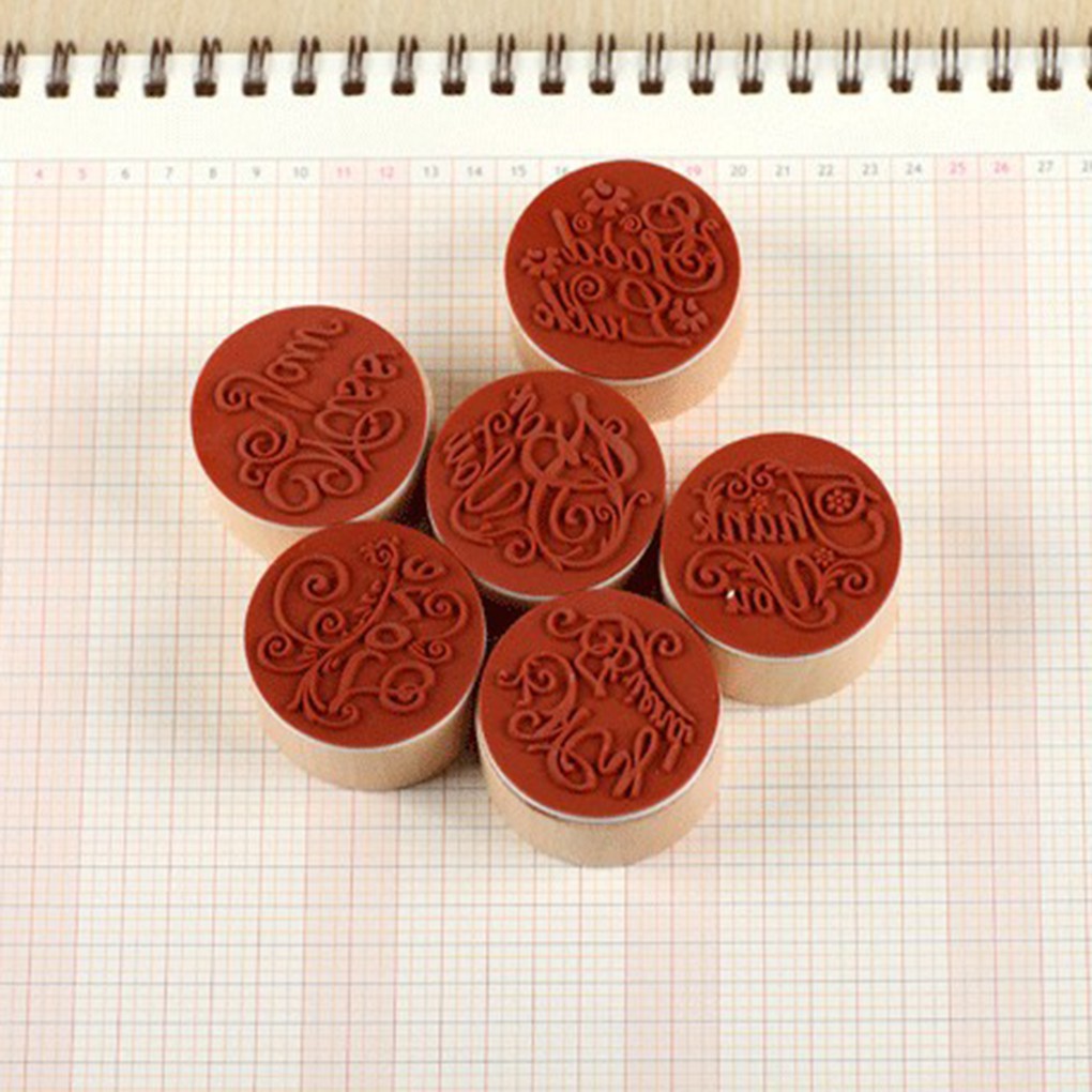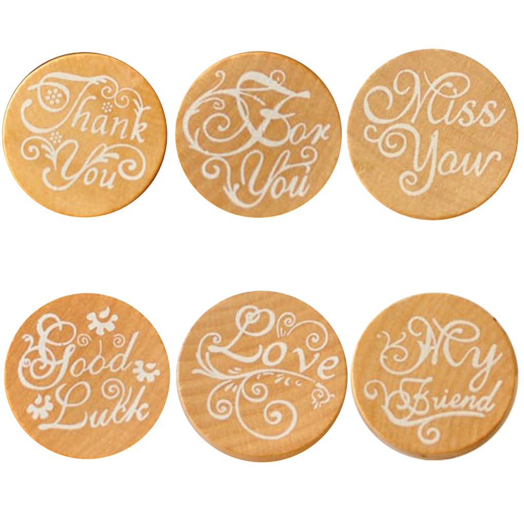 ตัวปั๊มไม้ทรงกลม ลายตัวอักษร ดอกไม้ สำหรับตกแต่ง DIY