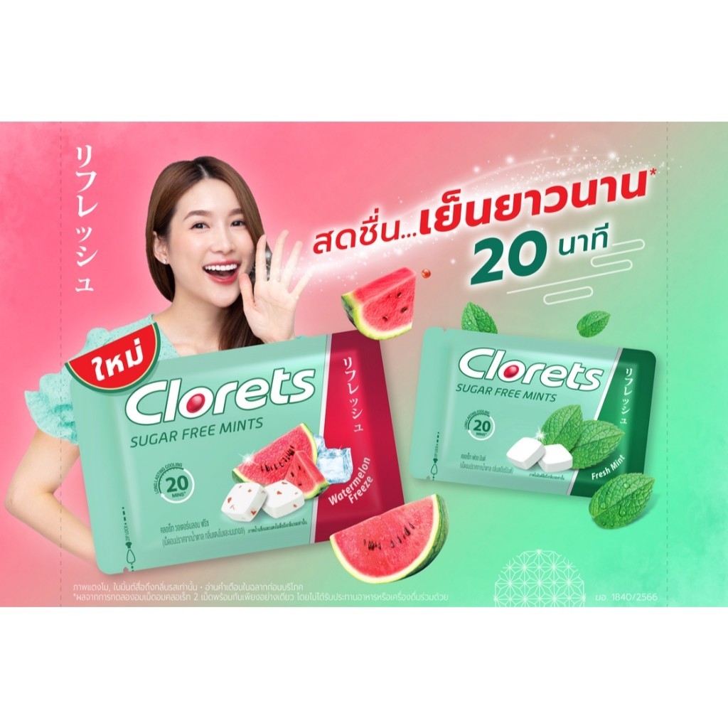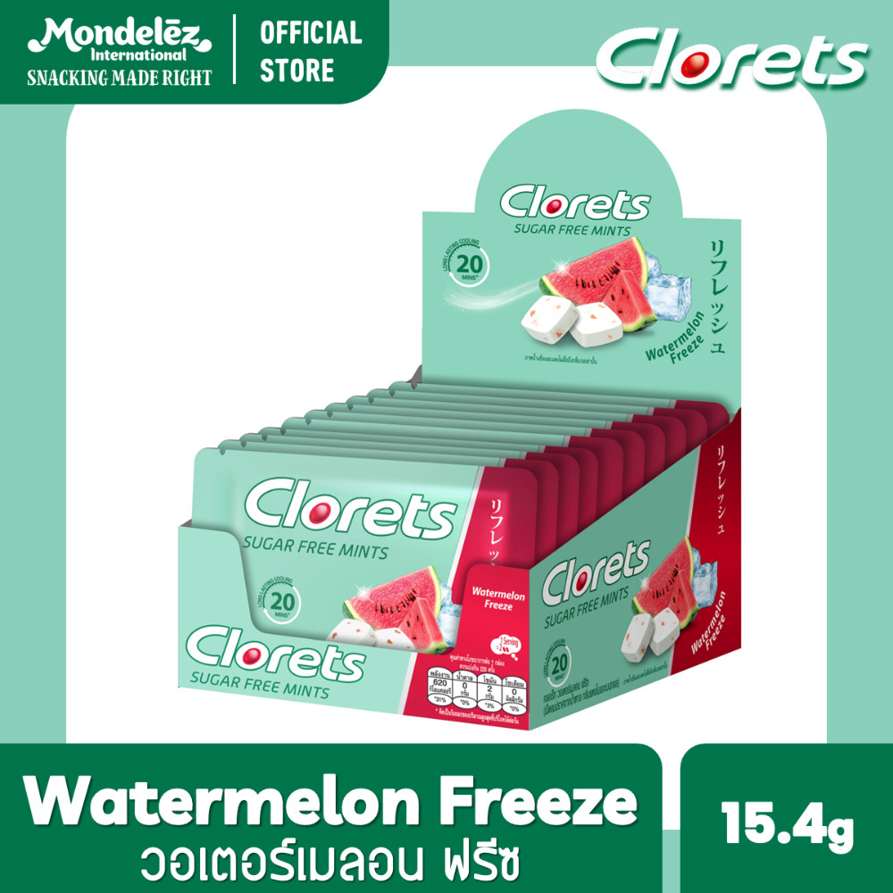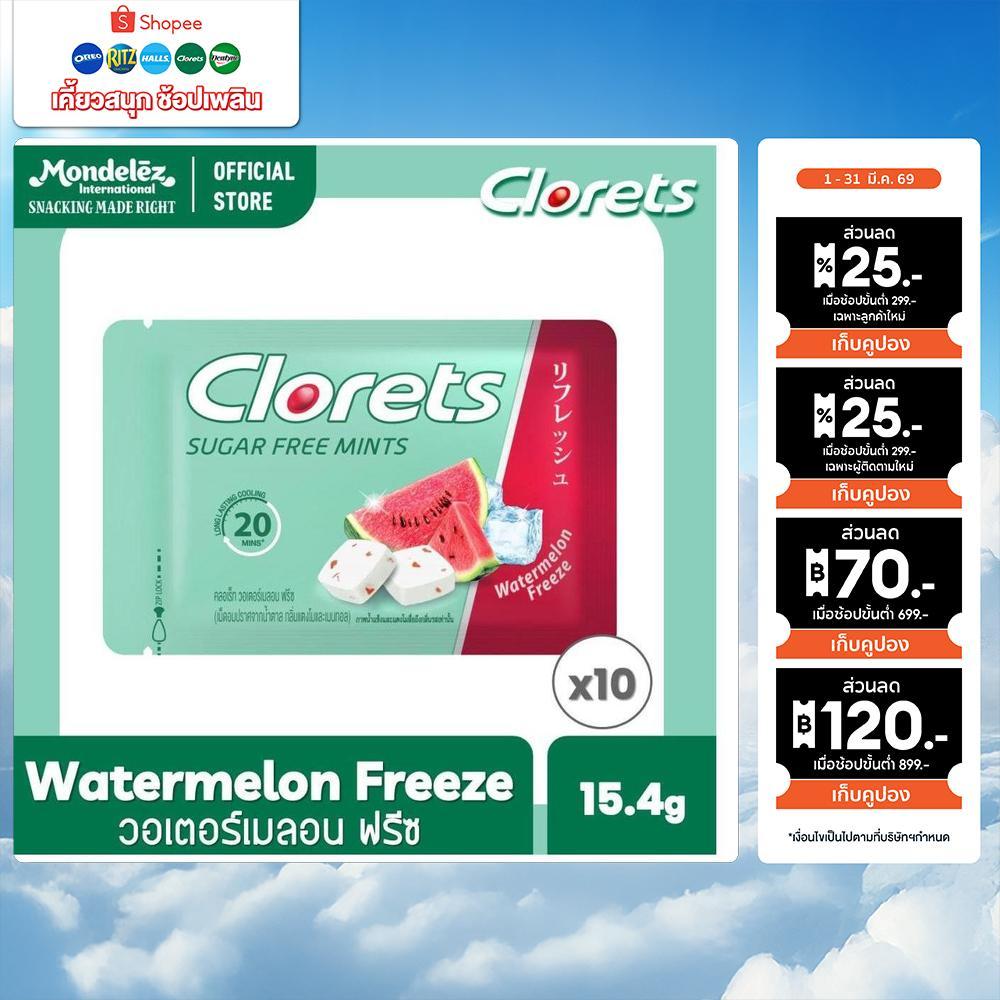 [แพ็ค 10 ซอง] Clorets Sugar Free Watermelon Freeze คลอเร็ท ชูการ์ฟรี วอเตอร์เมลอนฟรีซ 15.4g