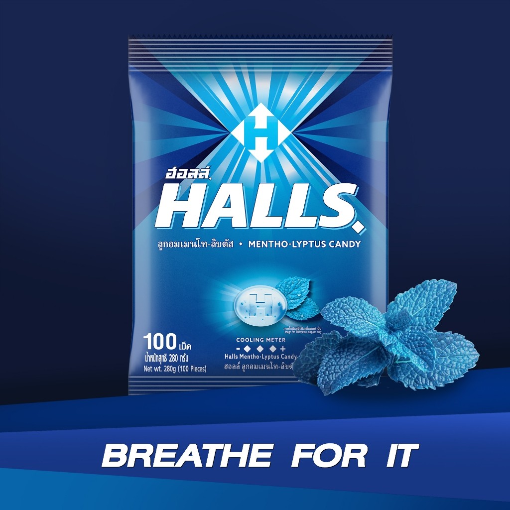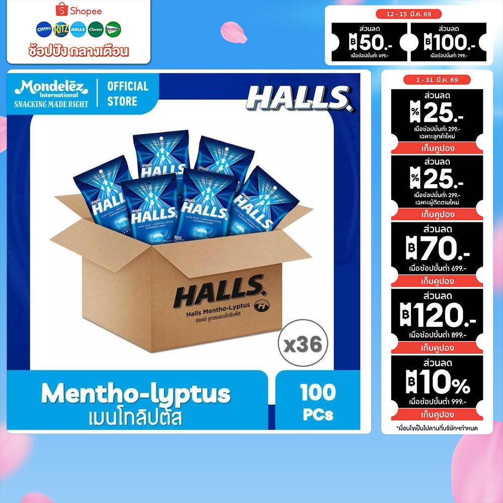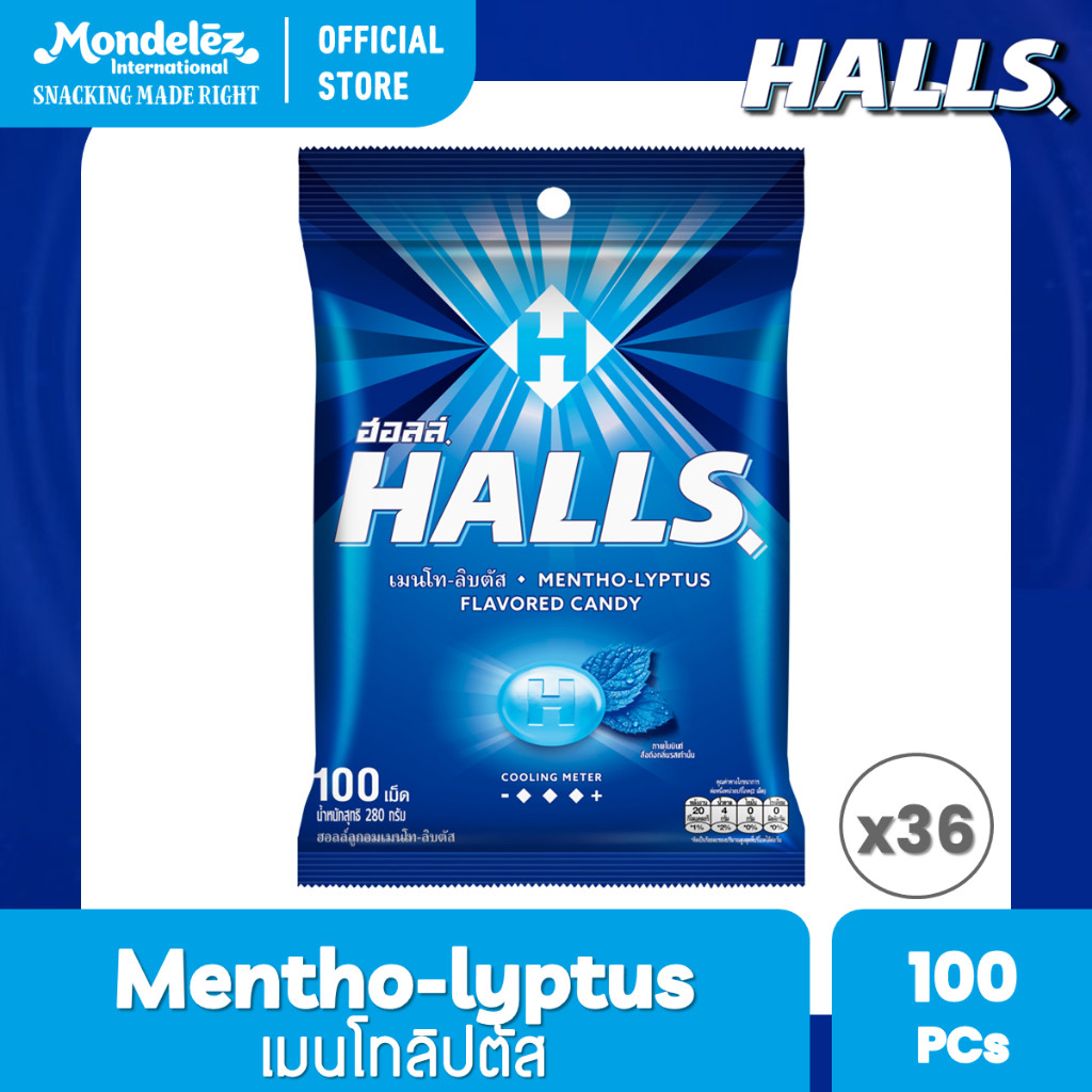 [ยกลัง 36 ถุง] Halls Mentho-Lyptus ฮอลล์ ลูกอมเมนโทลิบตัส แบบถุง 100 เม็ด (280 กรัม)
