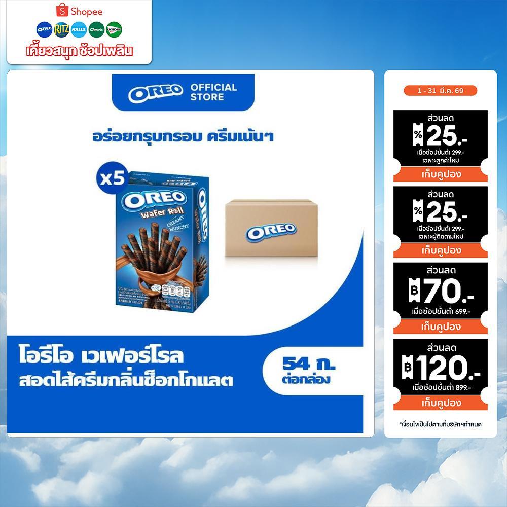 [แพ็ค 5 กล่อง] Oreo Chocolate Wafer Roll โอรีโอ เวเฟอร์โรลสอดไส้ครีม รสช็อกโกแลต 54g