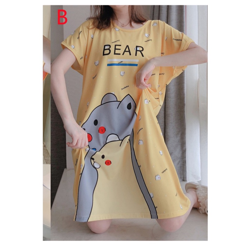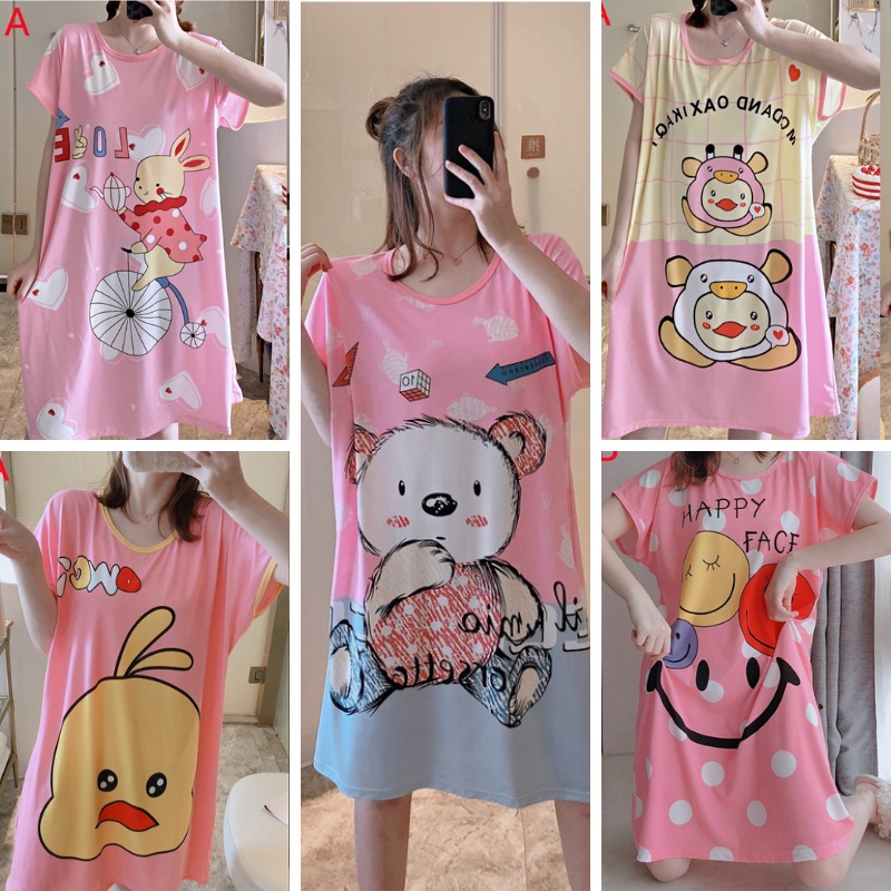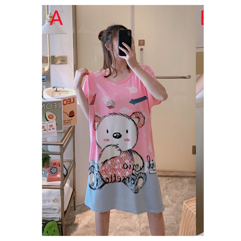 พร้อมส่งชุดนอนชุดเดรสชุดนอนกระโปรง ผ้าคอตตอน ฟรีไซส์ผ้านิ่มใส่ได้ใส่สบาย