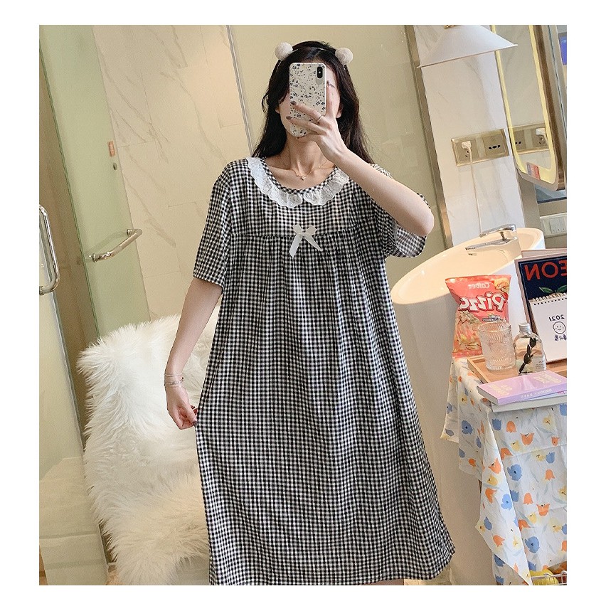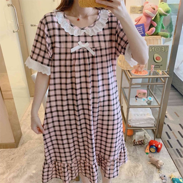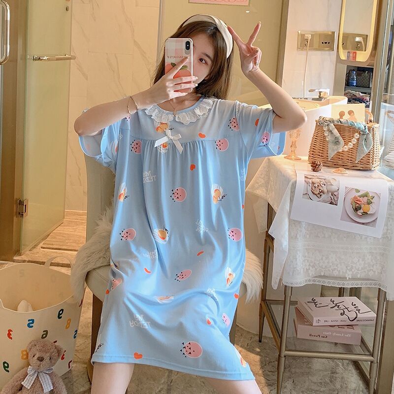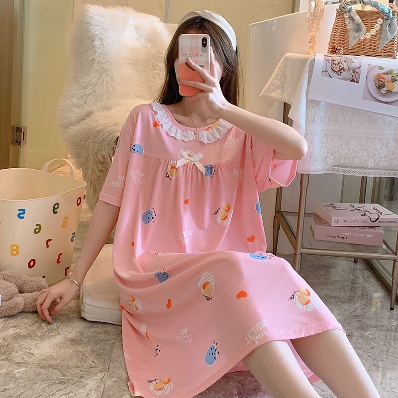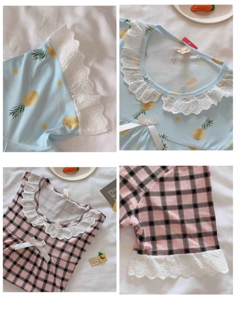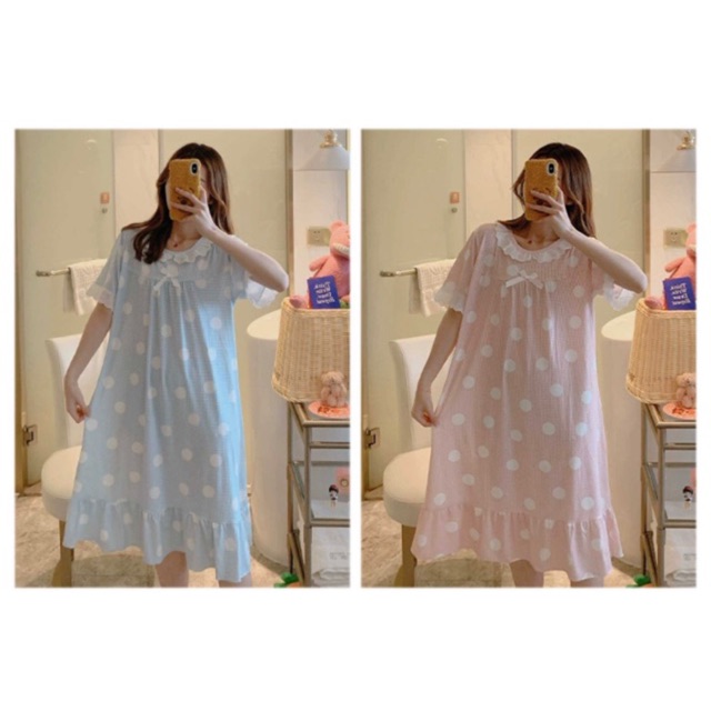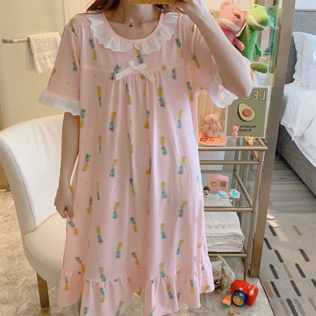 🔥🔥(พร้อมส่ง‼️)🔥🔥Aชุดนอนกระโปรง ชุดนอนชุดใส่อยู่บ้านสไตล์เกาหลี เนื้อผ้านิ่ม ผ้าคอตตอน ใส่สบ