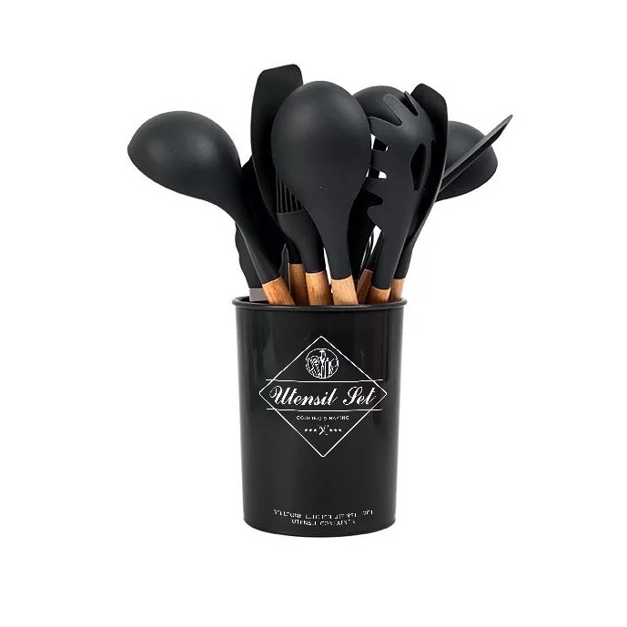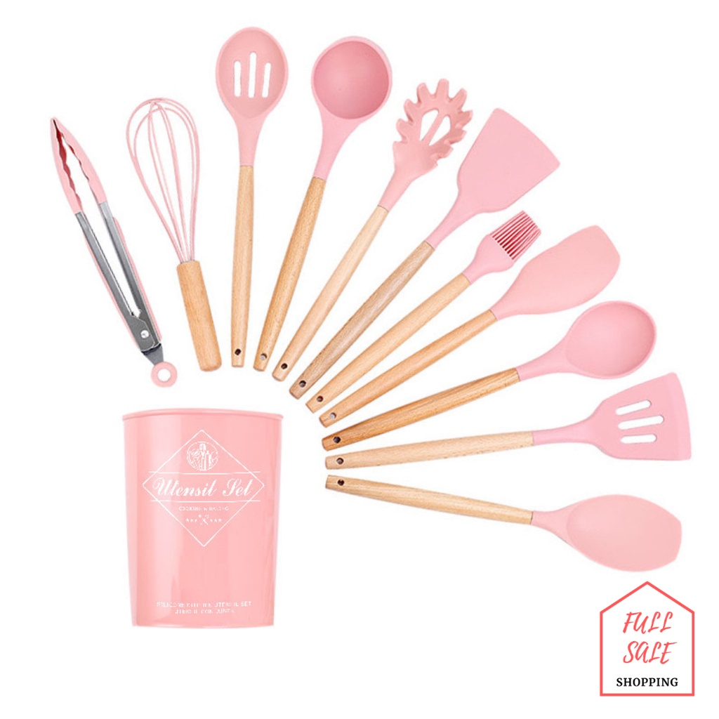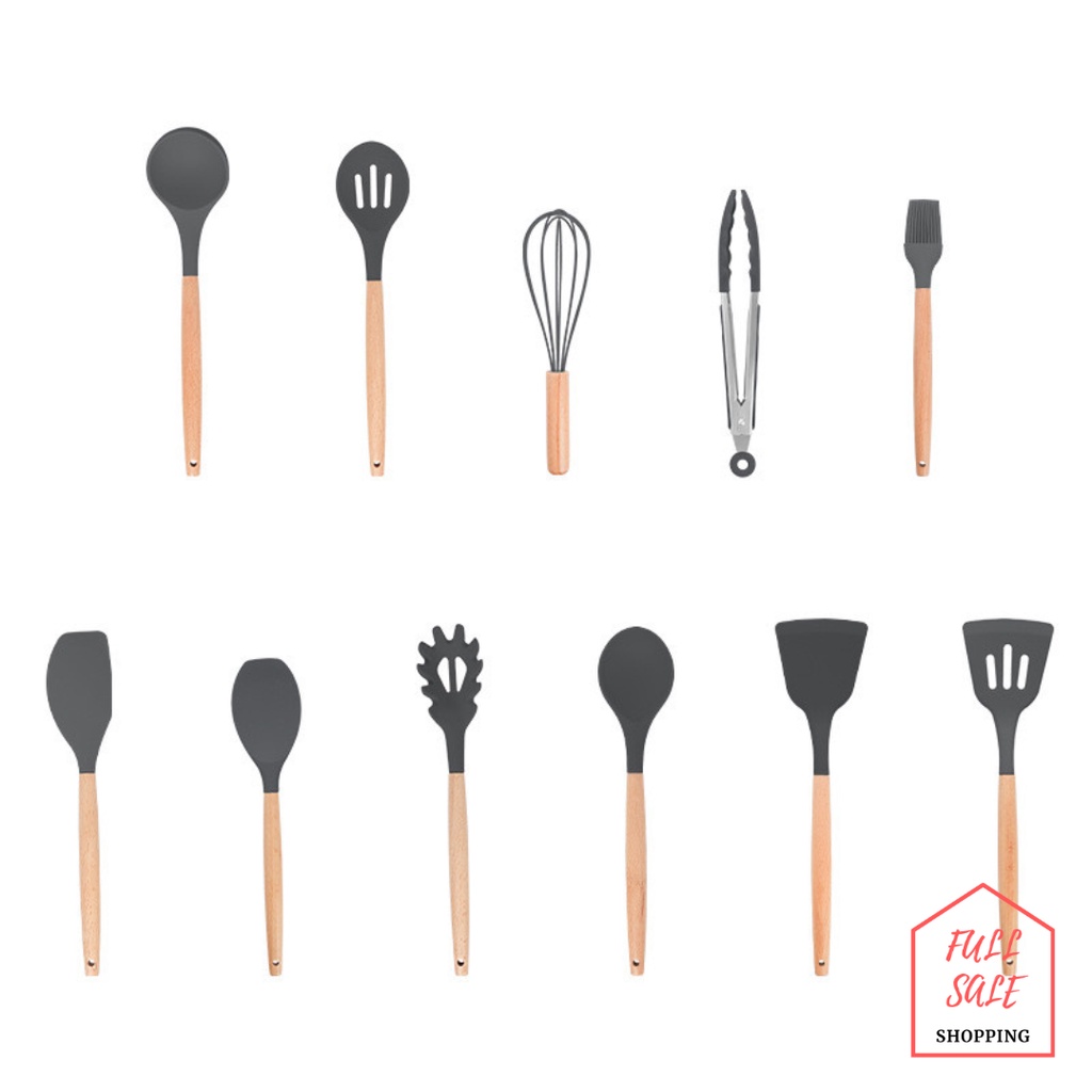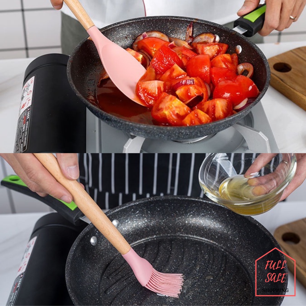 ใส่โค้ท 82HY9C ลด 40.- 🍳 ชุดตะหลิวซิลิโคนแท้ ด้ามจับไม้ ทนความร้อนไม่ละลาย กระทะไม่เป็นรอย