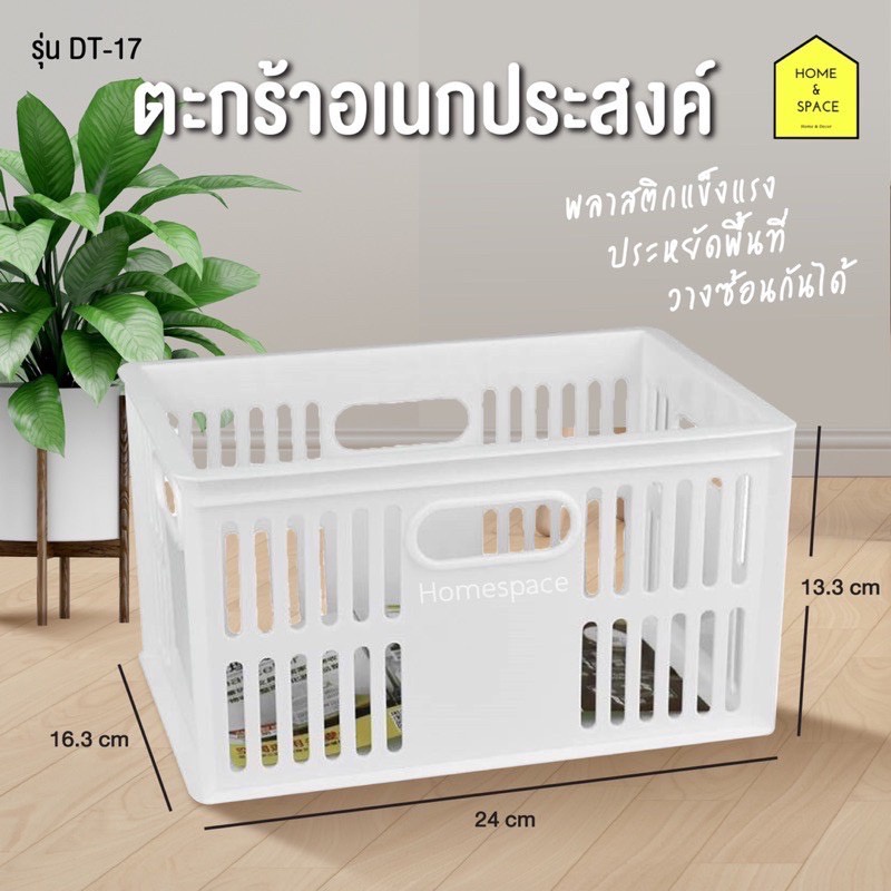ตะกร้าอเนกประสงค์ สี่เหลี่ยมสีขาว ยี่ห้อ Keyway รุ่น DT-17 ขนาด 16.3 x 24 x 13.3 cm