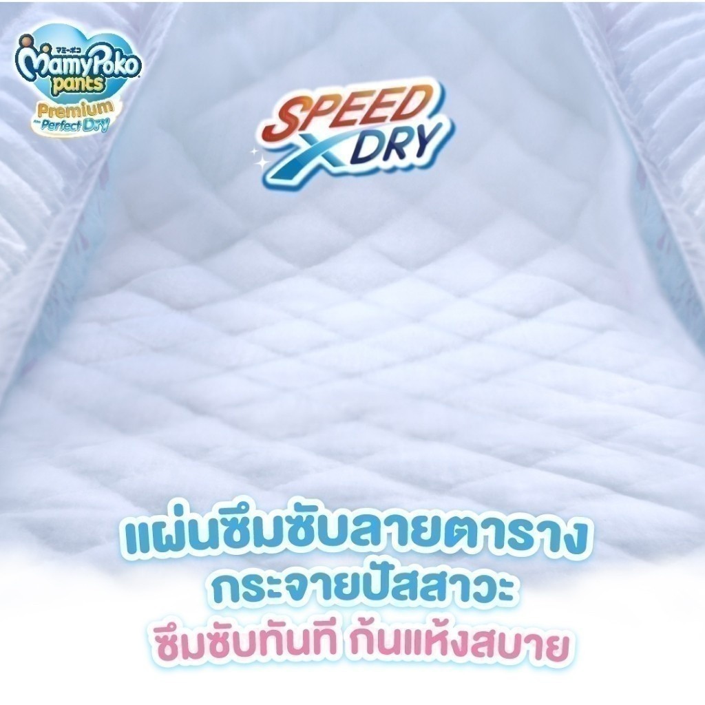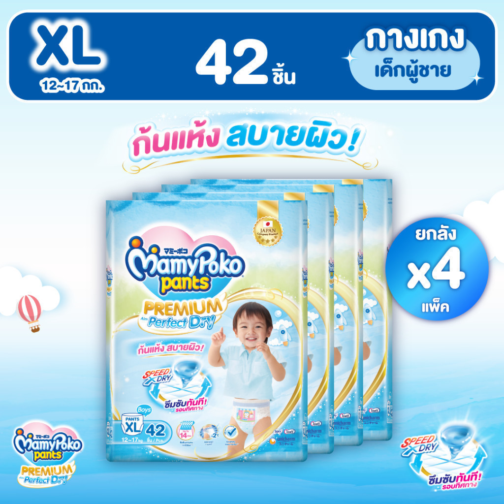 MamyPoko มามี่โพโค แพ้นท์ พรีเมี่ยม เอม เพอร์เฟกต์ ดราย ไซส์ S-XXXL x4 แพ็ค