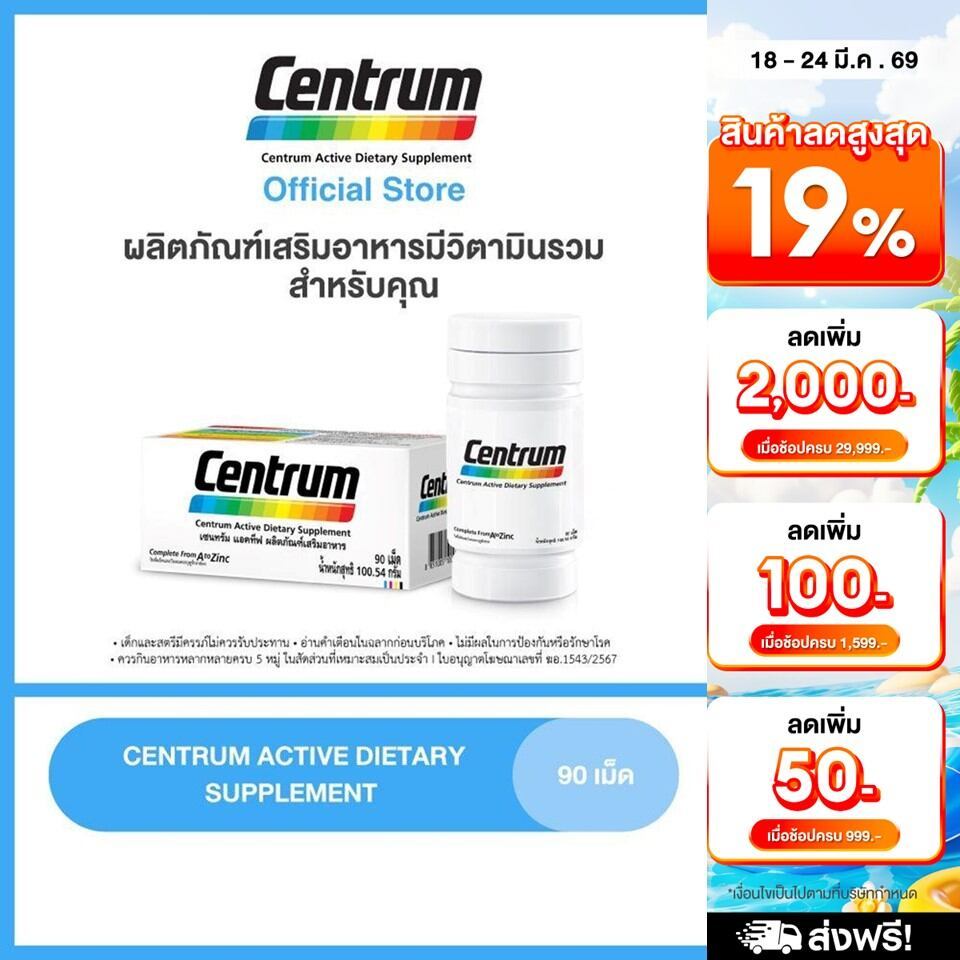 CENTRUM ACTIVE DIETARY SUPPLEMENT 90TABS เซนทรัม ผลิตภัณฑ์เสริมอาหาร วิตามินรวม สำหรับทุกคน 90 เม็ด รักษา