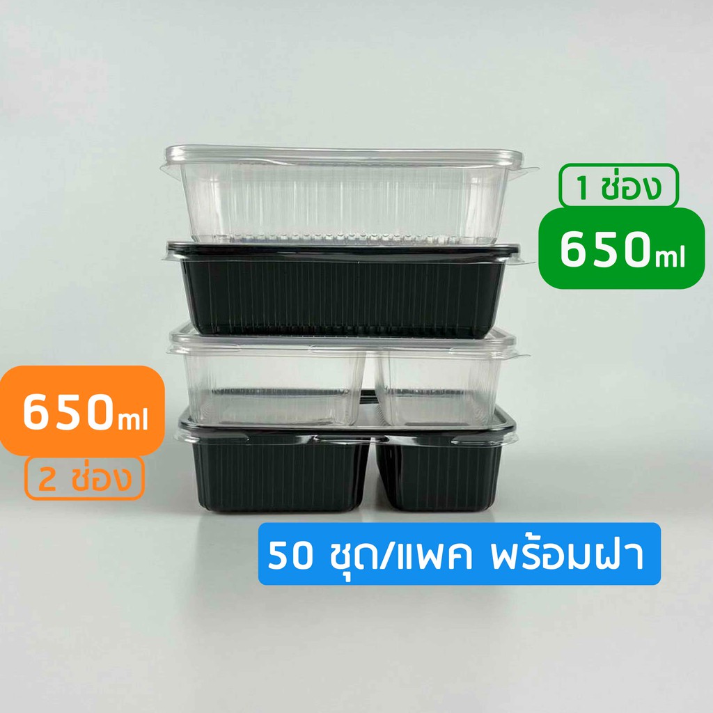 (50ชุด) HB กล่องใส่อาหาร สีใส/ดำ ขนาด 650มล. 1ช่อง 2ช่อง กล่องข้าวพลาสติก กล่องใช้แล้วทิ้ง (PP) กล่อง Take away