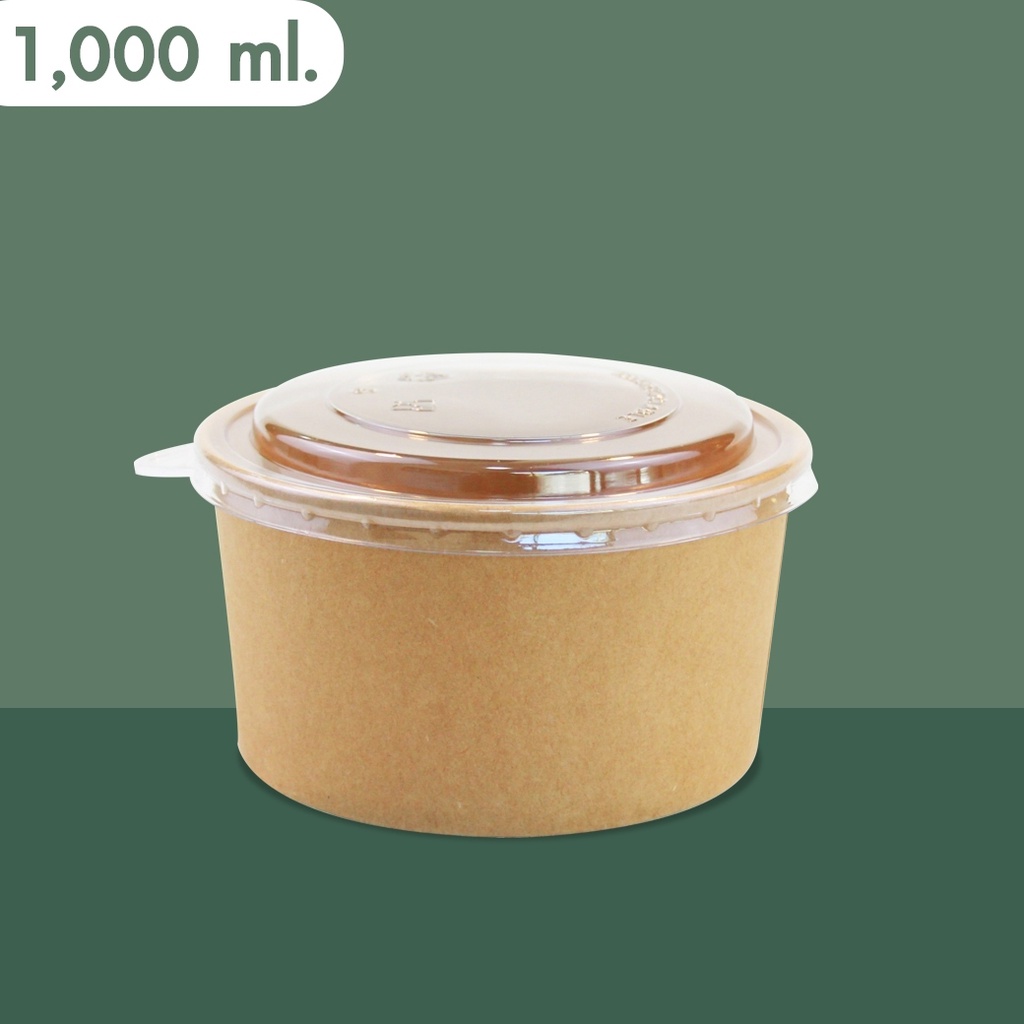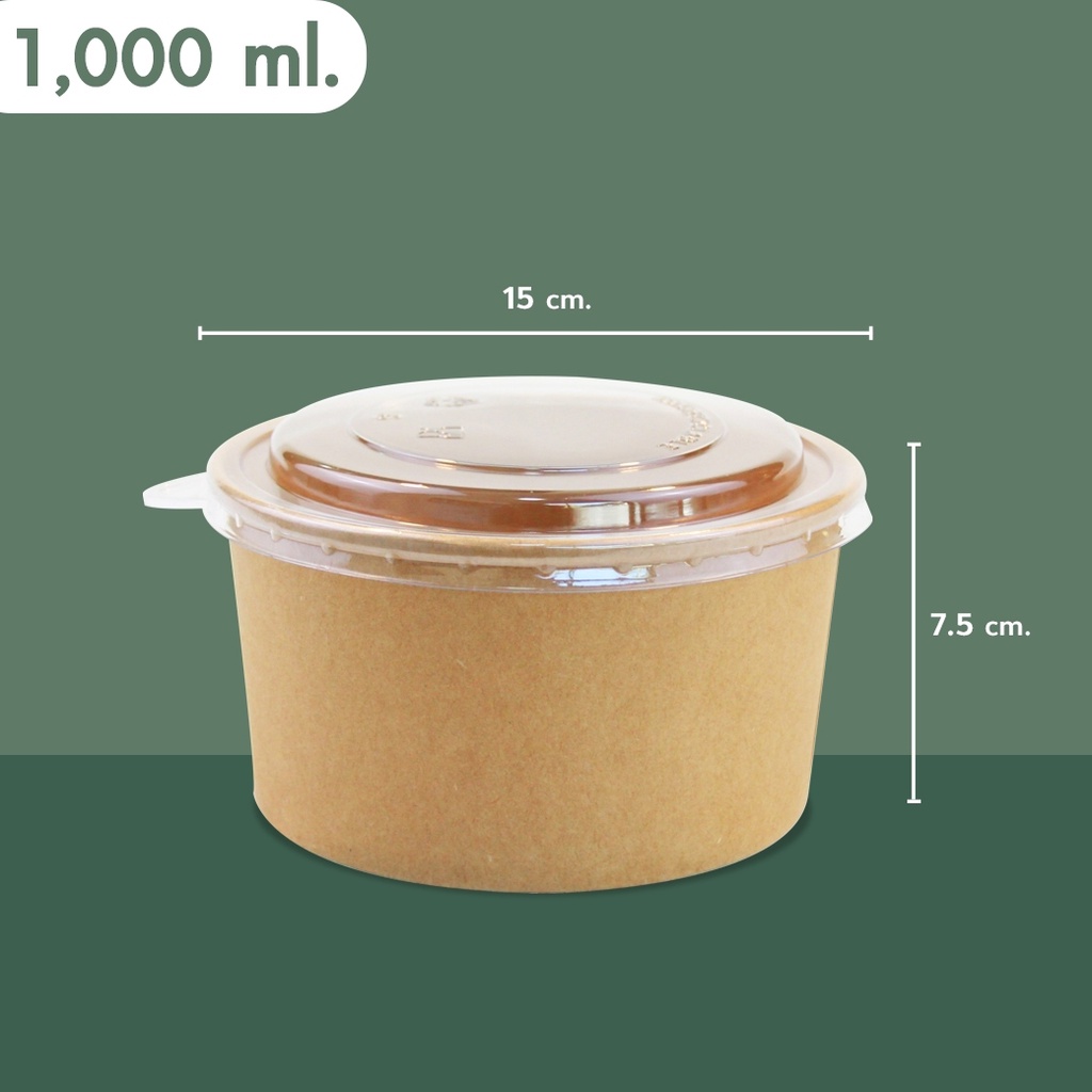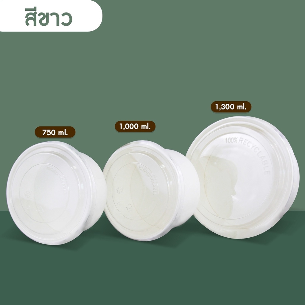 (25ชุด) ถ้วยอาหารกระดาษคราฟท์/ขาว + ฝาใส PET