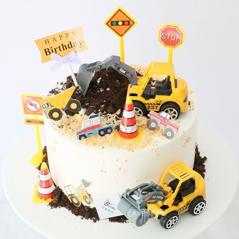 ป้ายปักเค้ก รูป/โมเดลรถแมคโคร รถเครน รถบรรทุก เหมาะสำหรับเด็กผู้ชาย ครบเซ็ต น่ารักมาก และป้ายสัญลักษณ์ต่างๆ