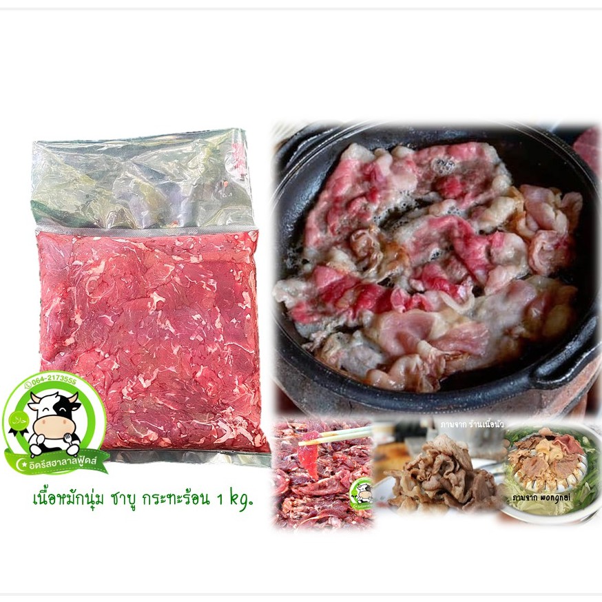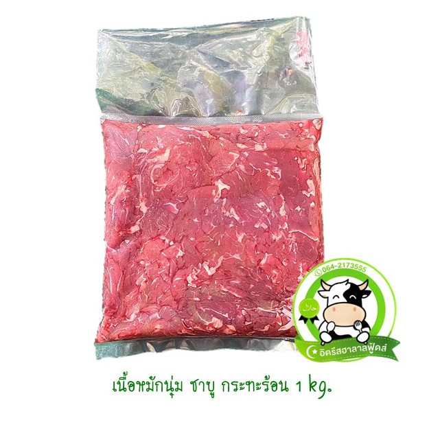 เนื้อหมักนุ่ม ชาบู กระทะร้อน 1kg. ฮาลาล ❌ไม่มีปนเปื้อน ❌ไม่ใส่สารกันบูด ❌ไม่ใส่ดินประสิว มีคืนค่าส่งบางพื้นที่จ้า