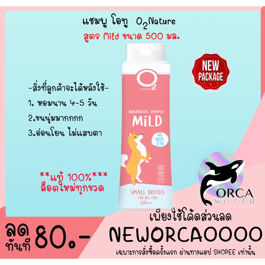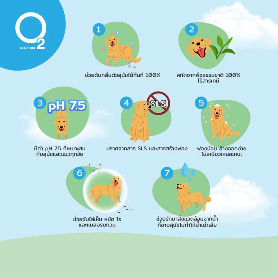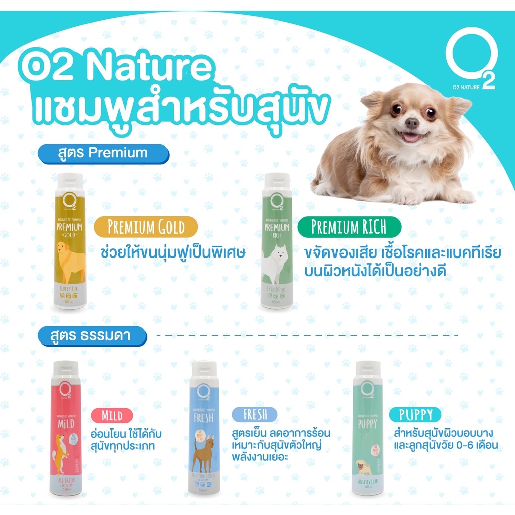 O2 Shampoo แชมพูสุนัข Mild 500 ml แชมพู โอทู สำหรับสุนัขผิวบอบบาง ขนนุ่ม ขนสวย กลิ่นหอม ทำจากออแกนิค
