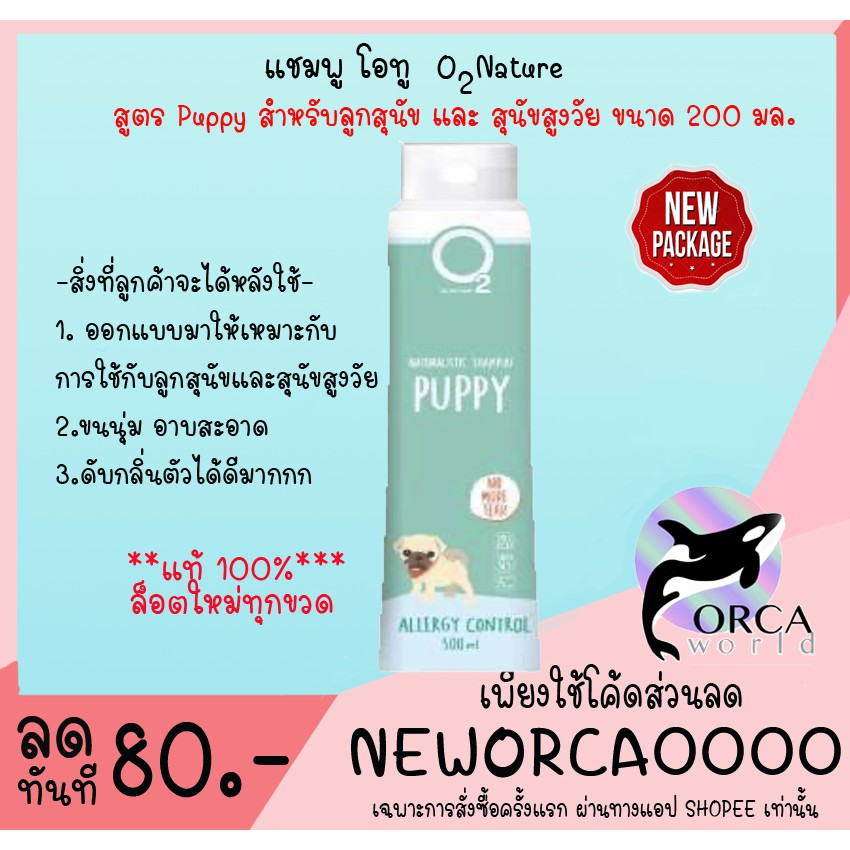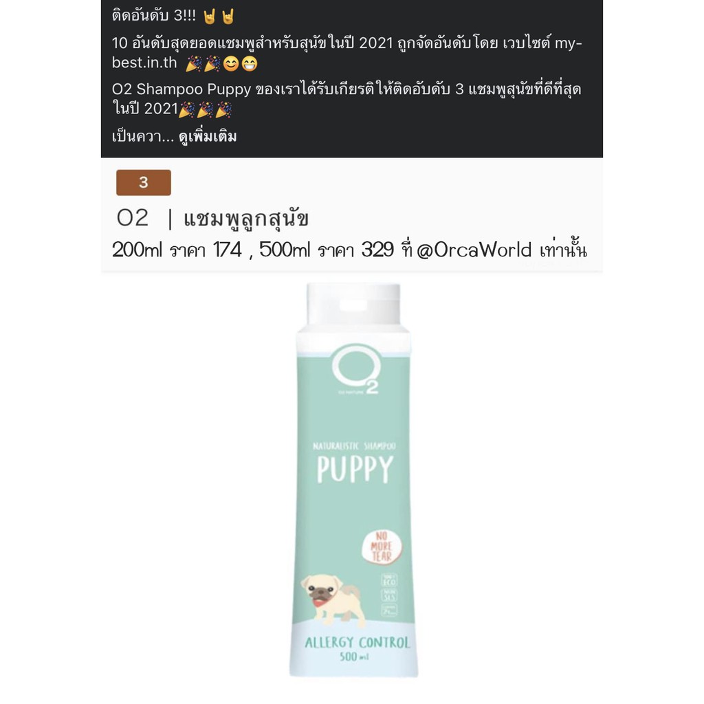 O2 Shampoo โอทูแชมพู สูตร Puppy แชมพูลูกสุนัข สุนัขอายุมาก ผิวบอบบาง ผิวที่แพ้ง่ายมาก ขนาด 200ml.