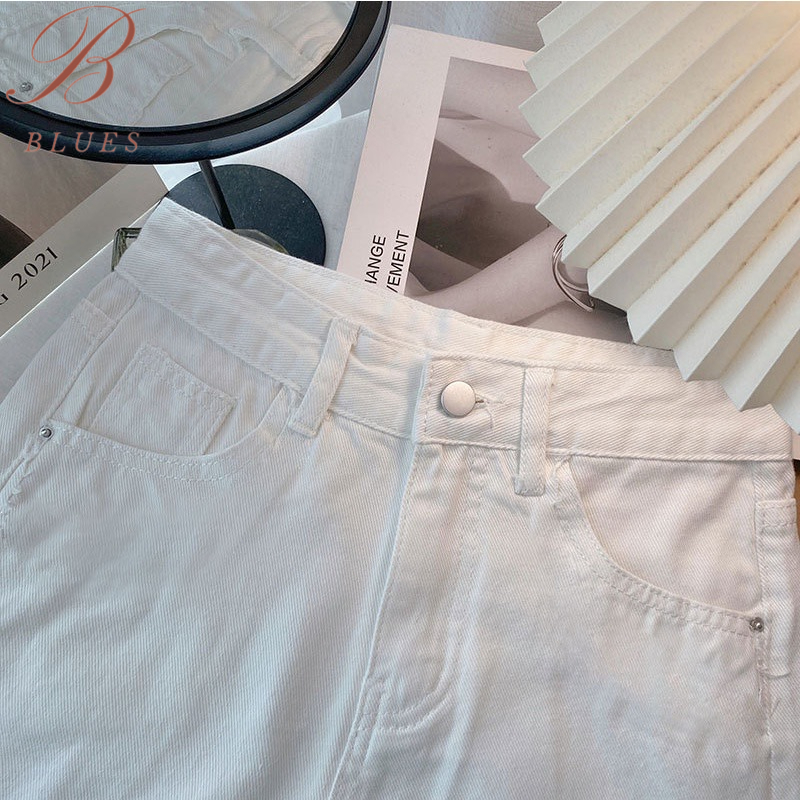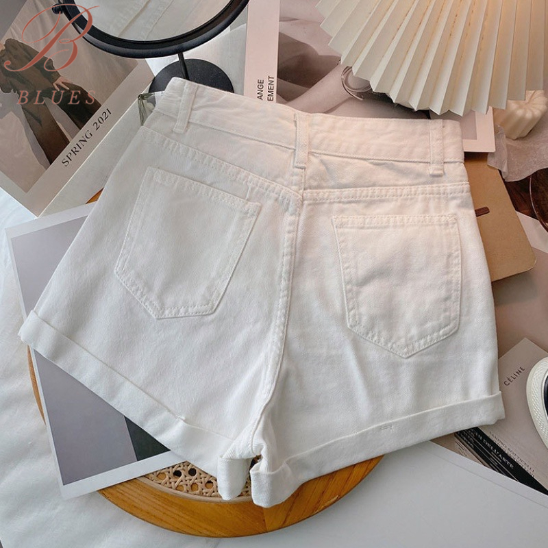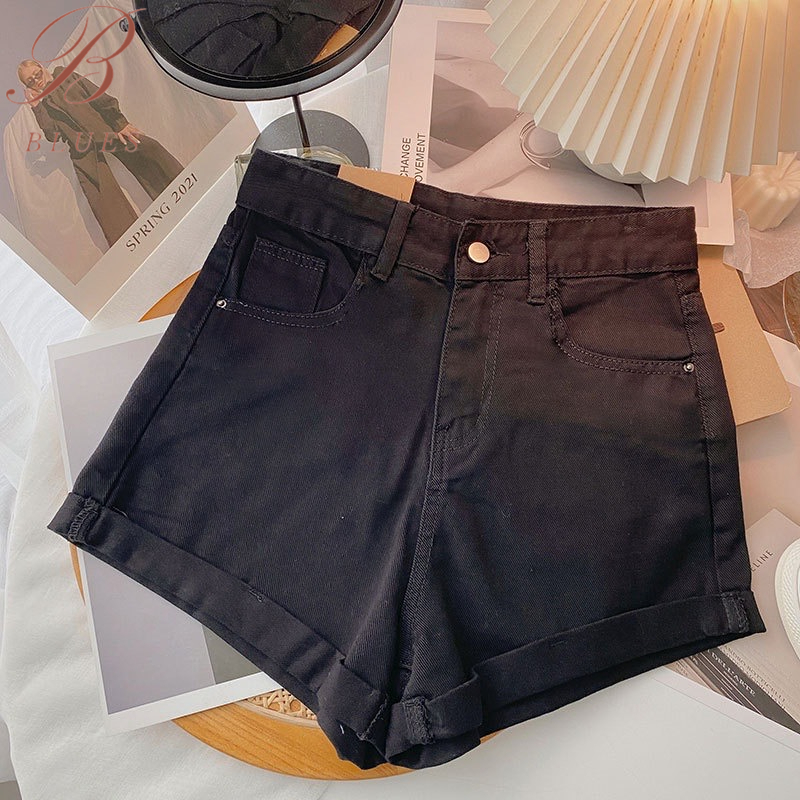 B BLUES ส่งไวจากไทย S-2XL ผู้หญิงเกาหลีกางเกงยีนส์ขาสั้น เอวสูงเรียบๆกางเกงขาสั้น