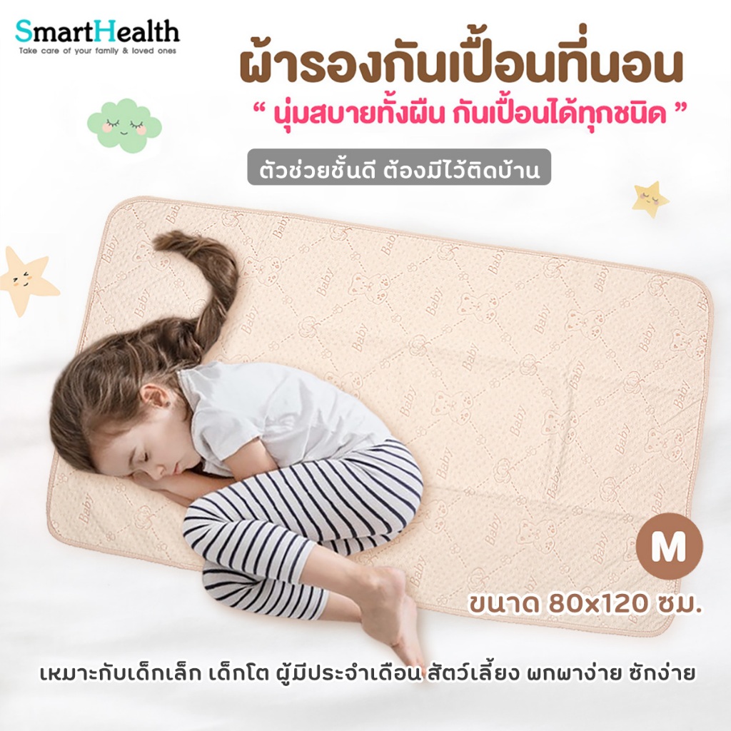 ผ้ารองกันเปื้อนที่นอน ผ้ารองฉี่เด็ก ผิวนุ่มของแท้ ขนาด 80x120 cm.