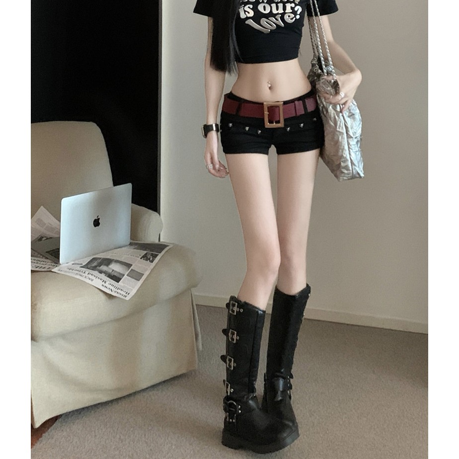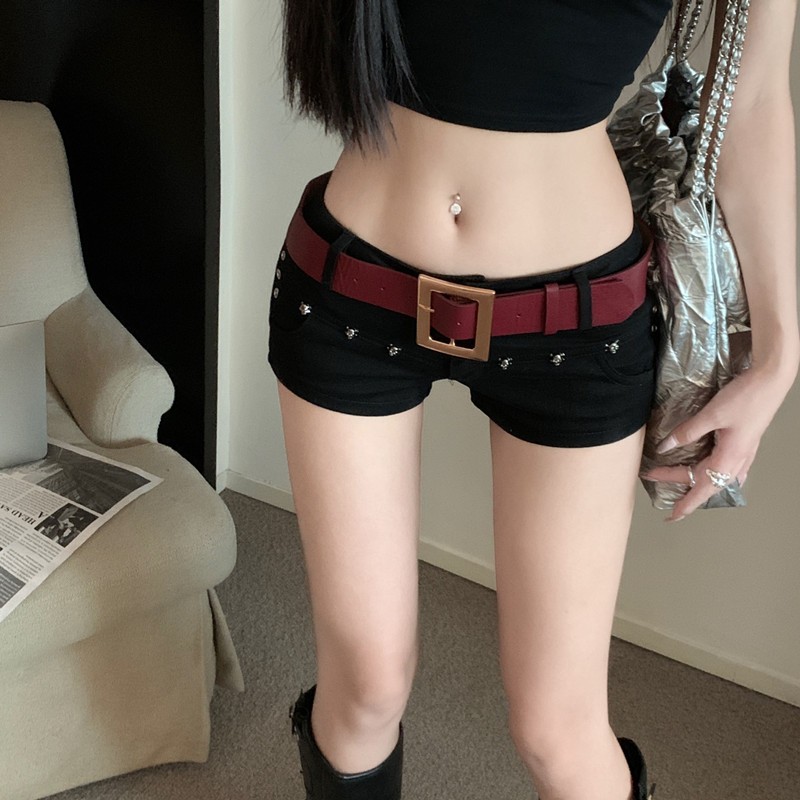 กางเกงยีนขาสั้น กางเกงยีนขาสั้นเอวต่ำ ผ้านิ่ม เเต่งกระเป๋าพิเศษ สไตล์วินเทจ#91102