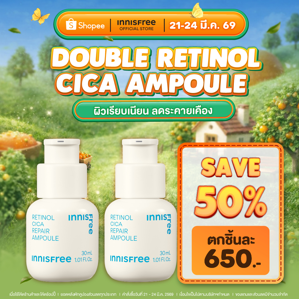 [1 แถม 1] innisfree Double Retinol Cica Ampoule set 30 mlx2 อินนิสฟรี เรตินอล จบวงจรสิวและรอยสิว