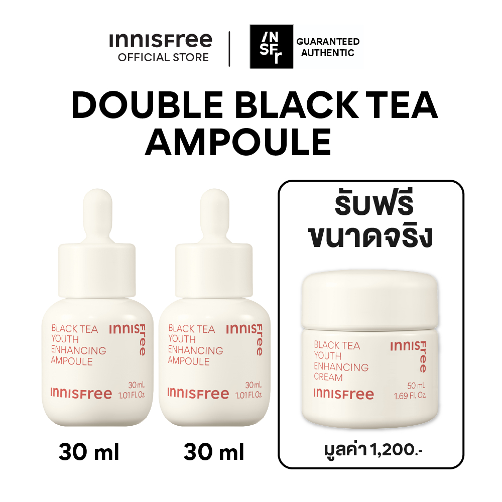 [แพ็คคู่] innisfree Double Black Tea Ampoule (30ml.x2) แอมพูลชาดำฟื้นฟูผิวล้า เพิ่มผิวกระชับ