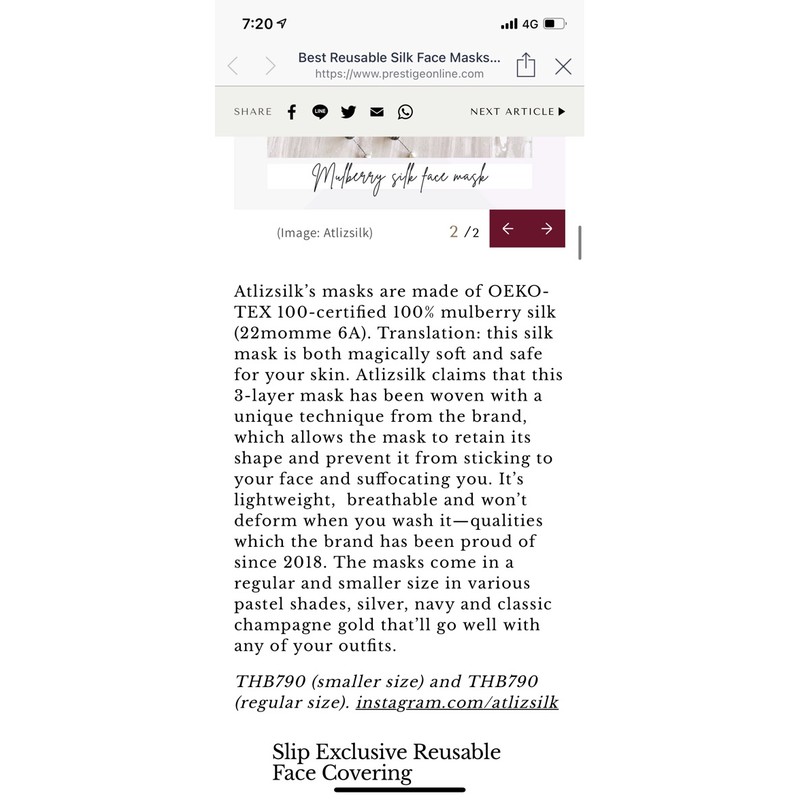 หน้ากากผ้าไหมมัลเบอร์รี่ OEKO-TEX จากเยอรมัน 🇩🇪 Atliz mulberry silk reusable 3D face mask vol.4 22 momme