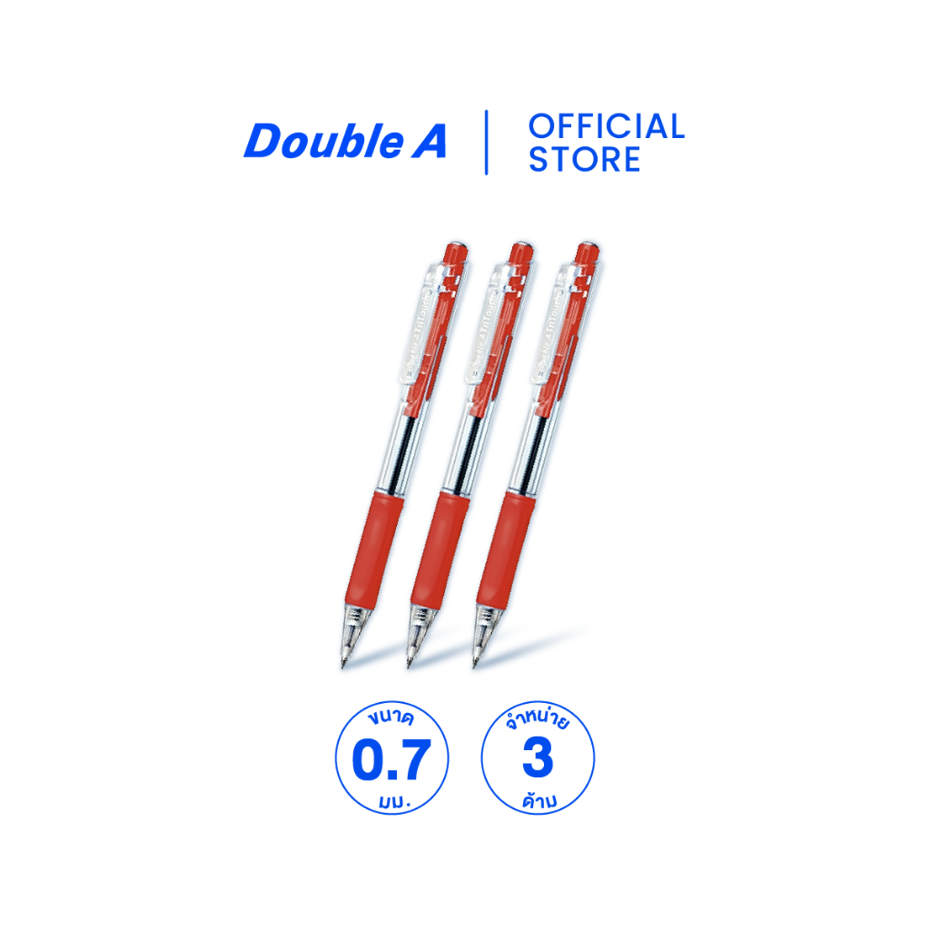 Double A TriTouch ปากกาลูกลื่นแบบกด 0.7 มม. จำหน่าย 3 ด้าม