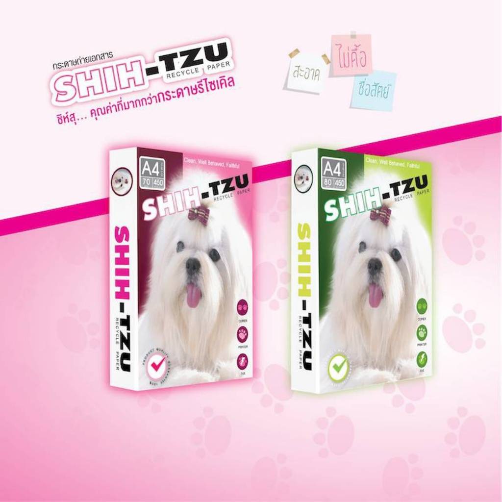[4 แพ็ก] Shih-Tzu Green กระดาษถ่ายเอกสาร ชิห์สุ A4 80gsm 450 แผ่น จำหน่าย 5 รีม จำนวน 4 แพ็ก